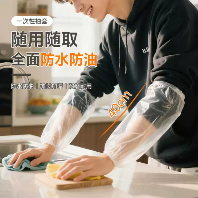 일회용 PE 플라스틱 슬리브 투명 화이트 블루 두꺼운 방수 내유성 슬리브 바베큐 호텔 주방 청소