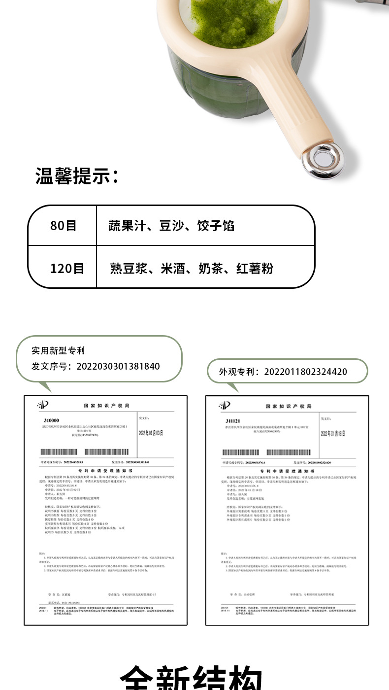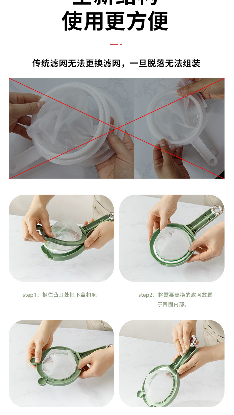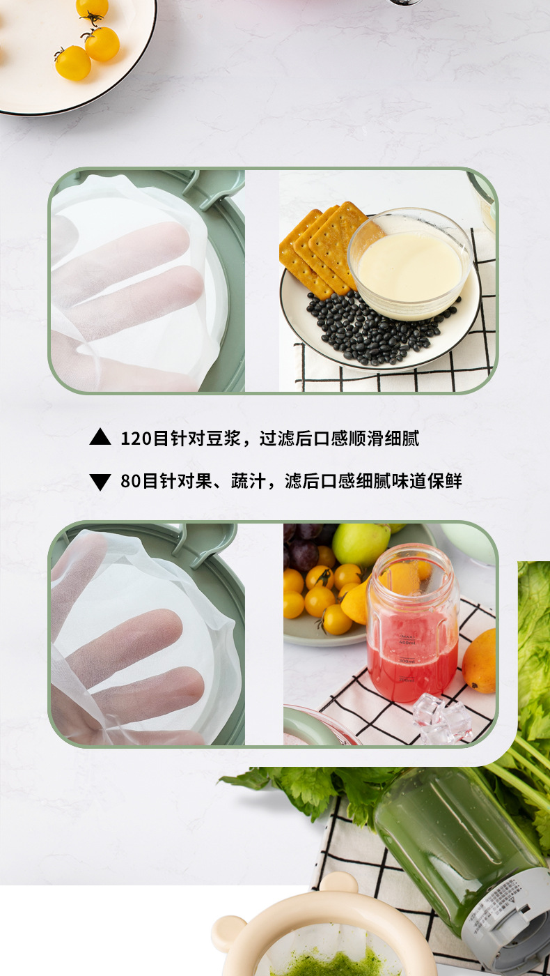 材质: PP+涤纶网+UV电镀 自带120目豆浆过滤网