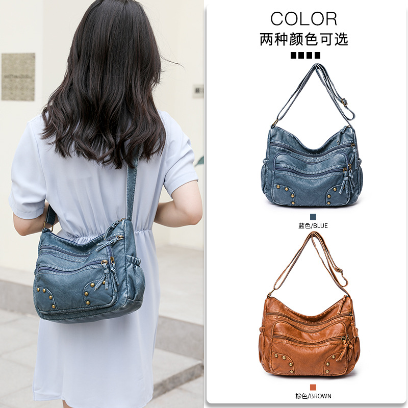 레트로 동남아시아 국경 배낭 대외 무역 새로운 여성 가방 유럽과 미국 패션은 부드러운 가죽 여성의 어깨 메신저 가방을 씻었습니다.