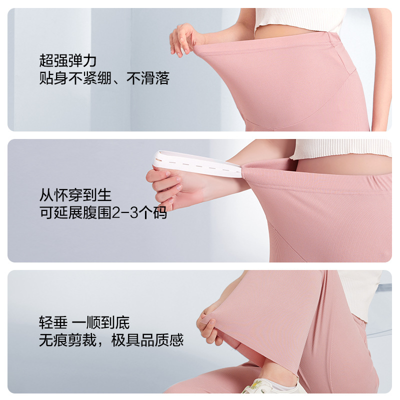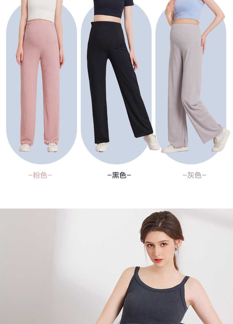 임산부 와이드 팬츠, 봄가을 얇은 임산부 바지, 루즈핏 하이웨이스트 복부 지지 팬츠, 통기성 좋은 여름옷, 통기성 좋고 편안함