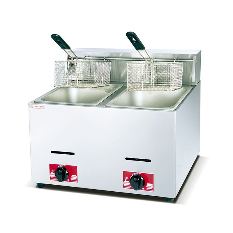商用燃气炸炉 台式双缸双筛汉堡店炸炉 餐厅设备加厚油炸炉批发