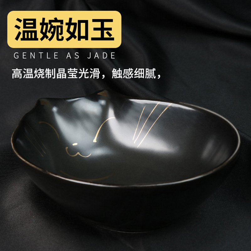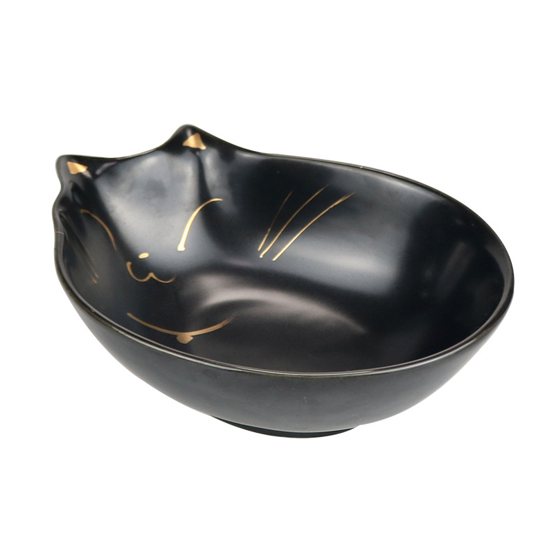 애완동물 도자기 사발 일본 금 고양이 사발 플랫 페이스 고양이 마시는 대야 고양이 사료 사발 먹이 높은 색 값 고양이 사발