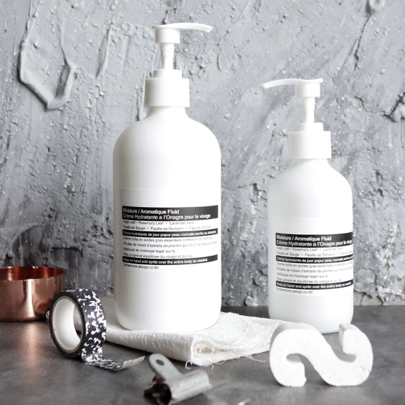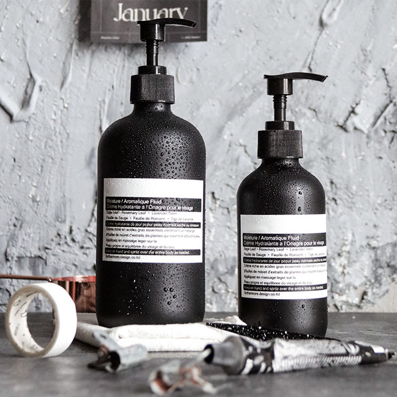 500ml 갈색 유리 블랙 스티커 바디워시 푸시형 공병