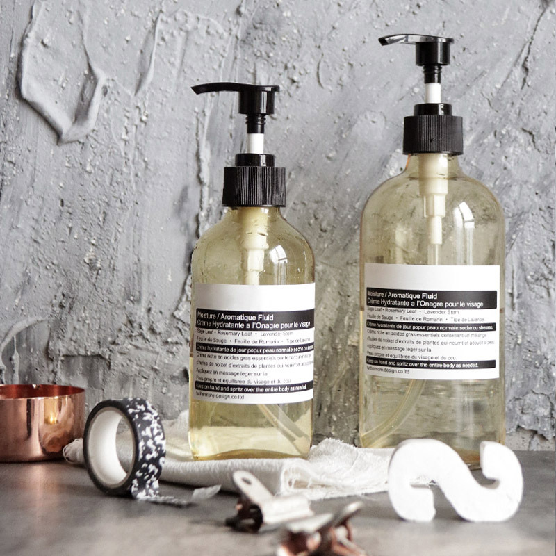 500ml 갈색 유리 블랙 스티커 핸드워시 펌프형 공병