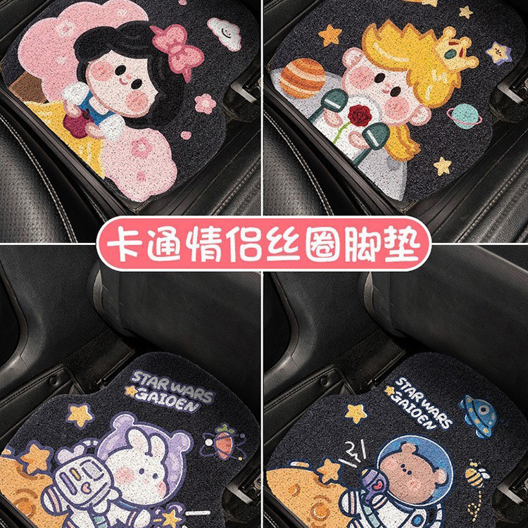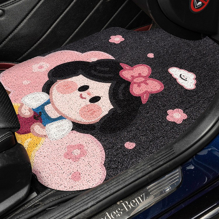 만화 자동차 매트 빨 단일 조각 귀여운 소녀 자동차 안티 더러운 긁는 지구 매트 실크 루프 매트