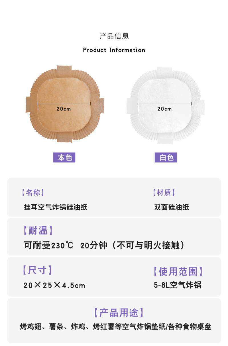 에어프라이어 종이, 주방용 실리콘 오일 종이, 기름 흡수 종이, 오븐 베이킹 종이 접시, 방유 종이, 식품 등급 롤 엣지