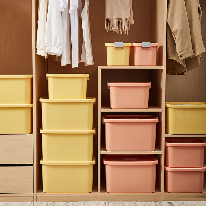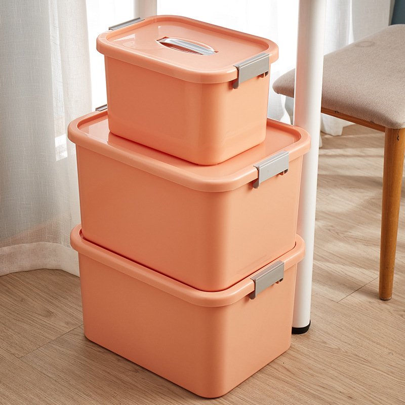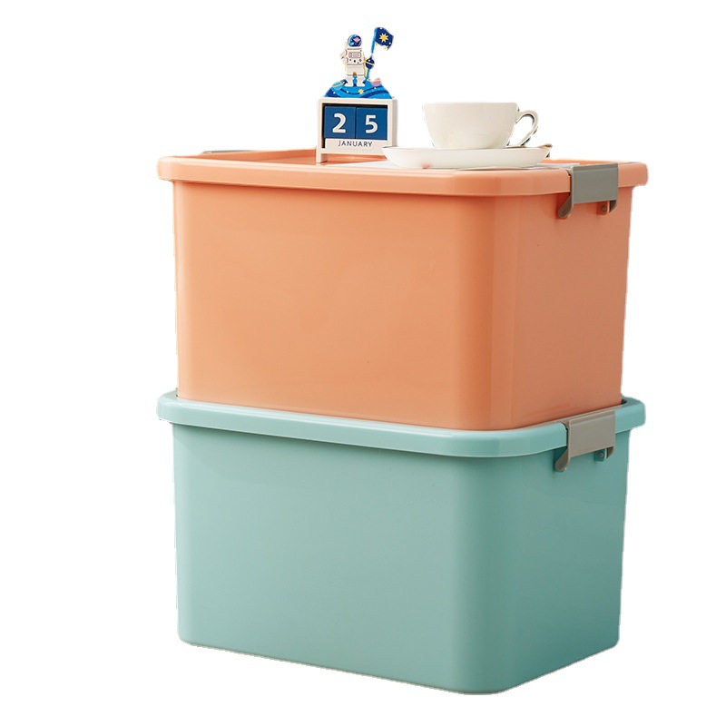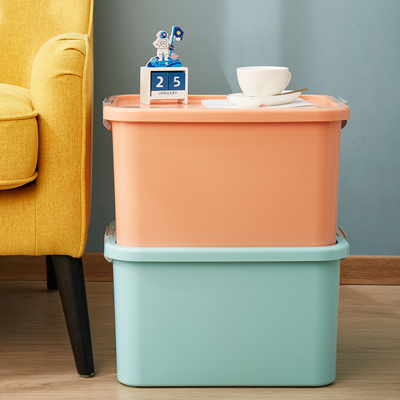 책 간식을위한 뚜껑이있는 휴대용 보관함 플라스틱 상자 정리 색 상자 옷 장난감 보관함