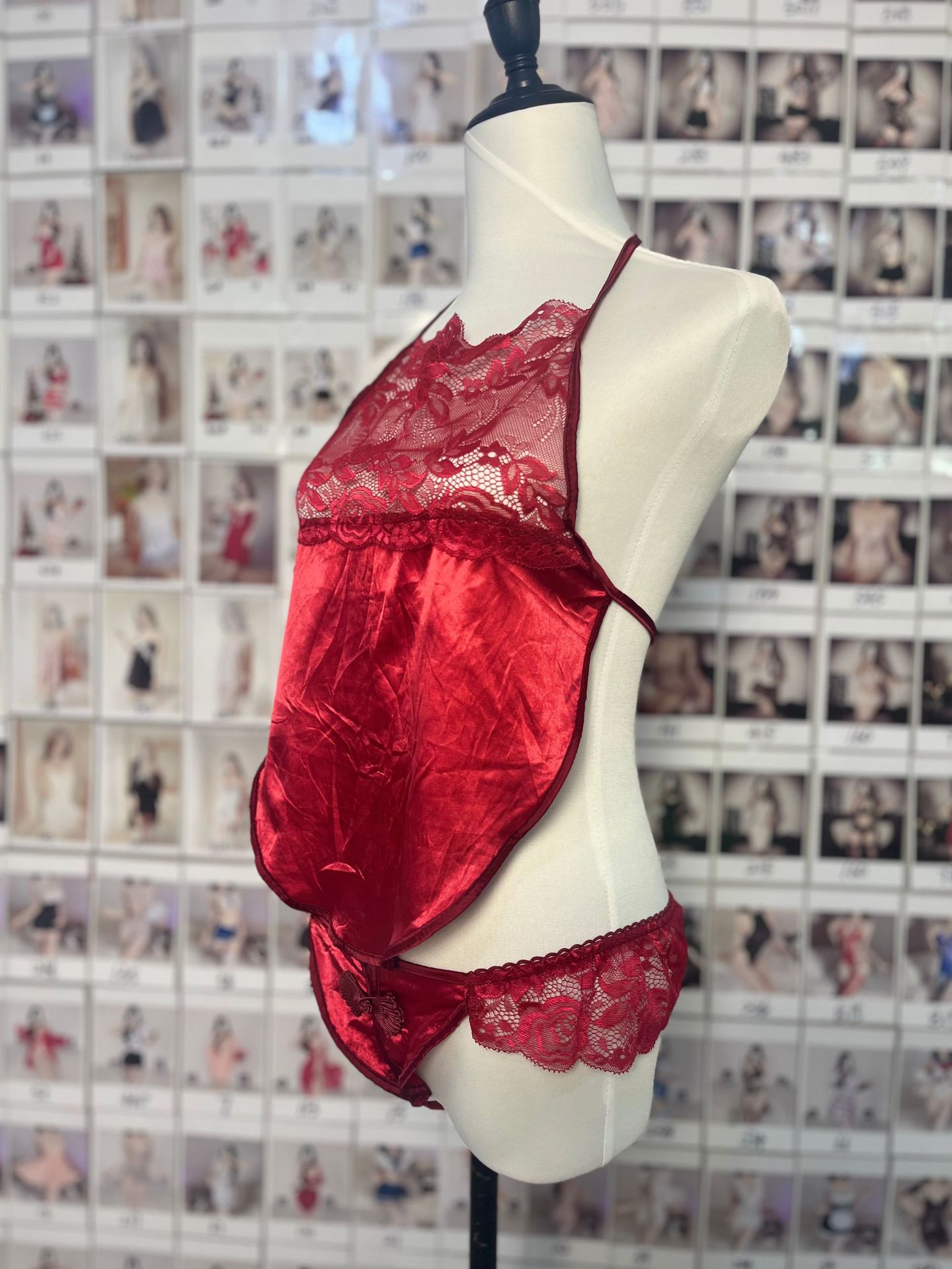 레드 “배꼽 + 속옷 + 레이스 스타킹]