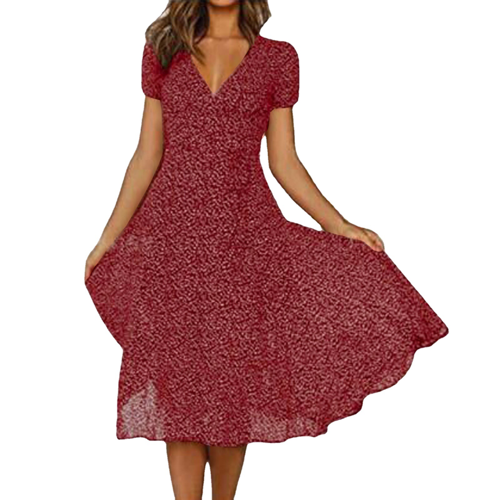2023 봄과 여름 크로스 보더 여성 의류 eaby 아마존 폭발 반팔 V-넥 섹시한 꽃 무늬 인쇄 원피스