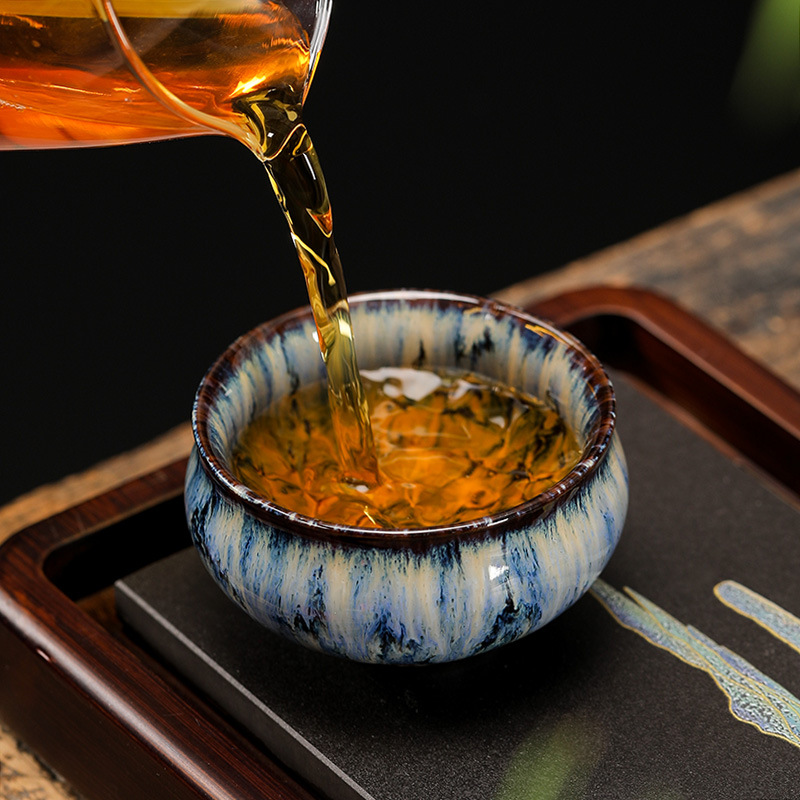 킬른 변경 다섯 요소 컵 차 홀더 마스터 티 컵 세라믹 쿵푸 차 세트 차 그릇 세트 내장 찻잔 로고 선물 상자