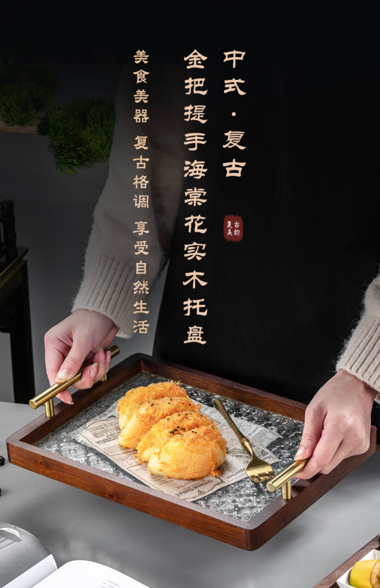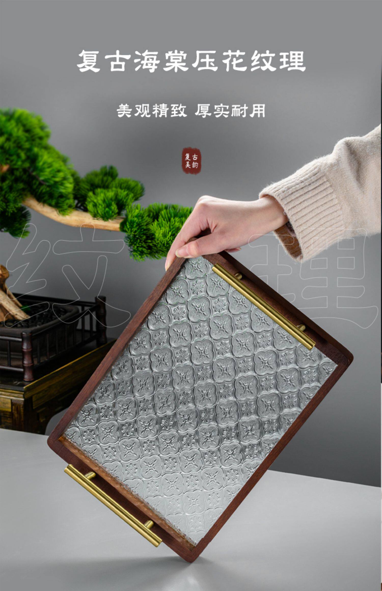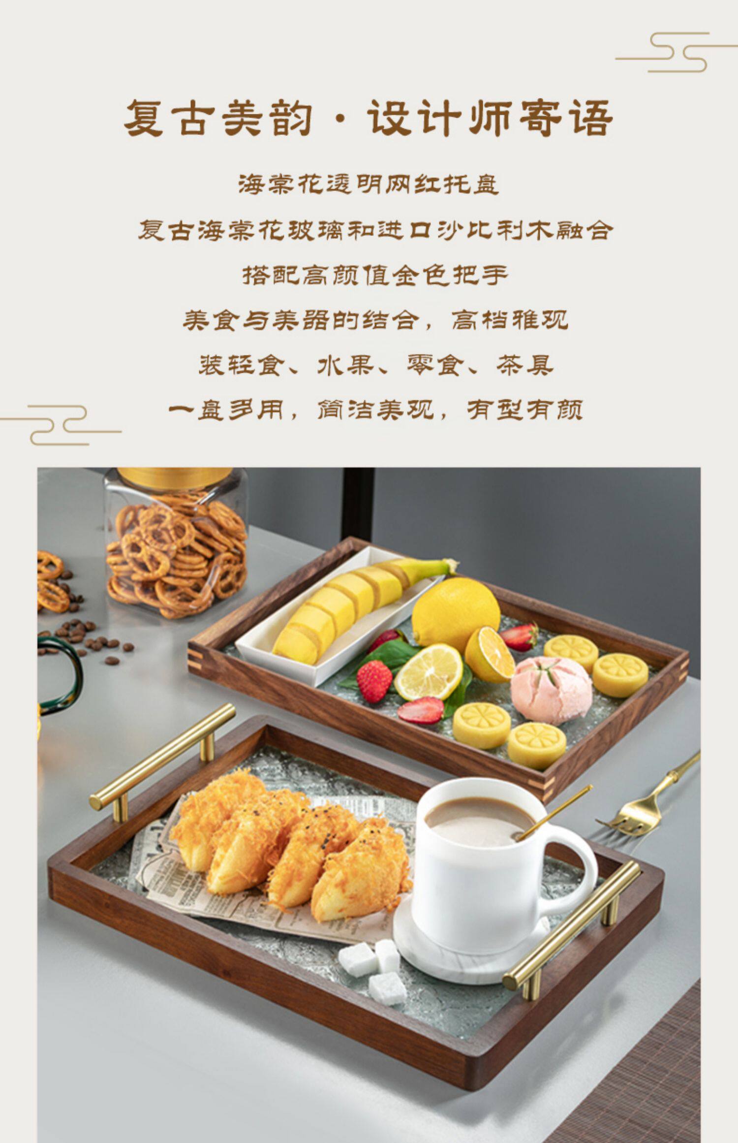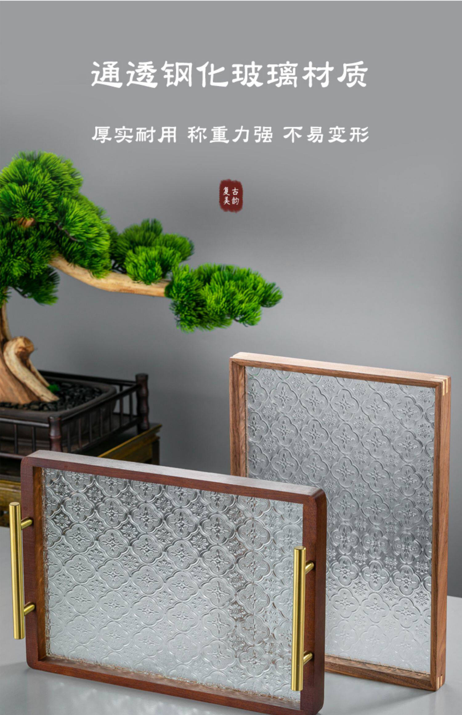 원목 유리 트레이 작은 직사각형 호두나무 컵 보관 과일 거실 티 테이블 간식 트레이 과일 트레이