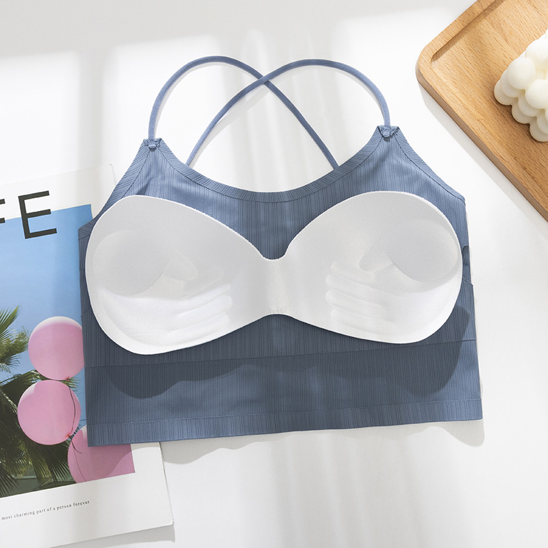 여름 새로운 아이스 실크 크로스 랩 가슴 섹시한 향신료 소녀 배꼽 작은 슬링 큰 등이없는 겉옷 내부 튜브