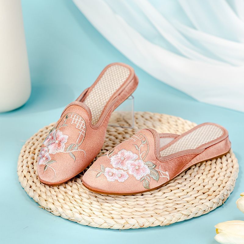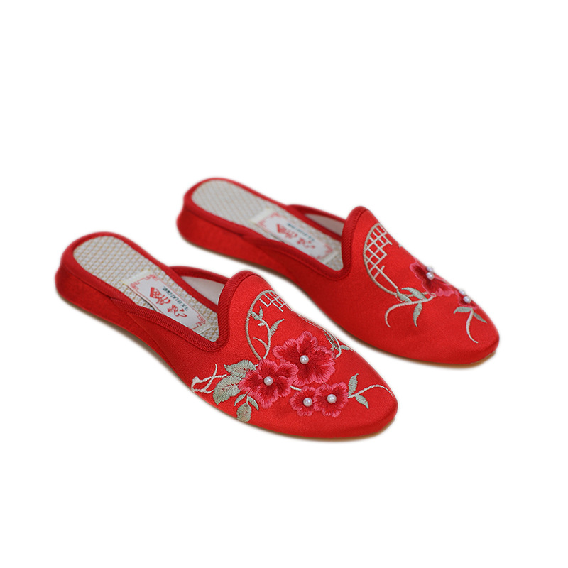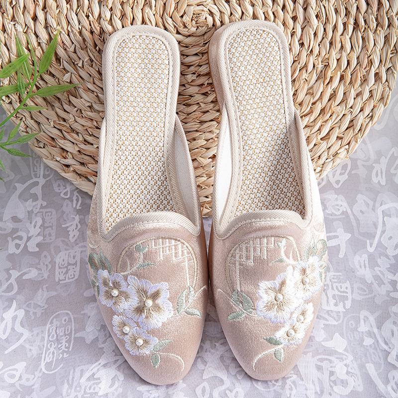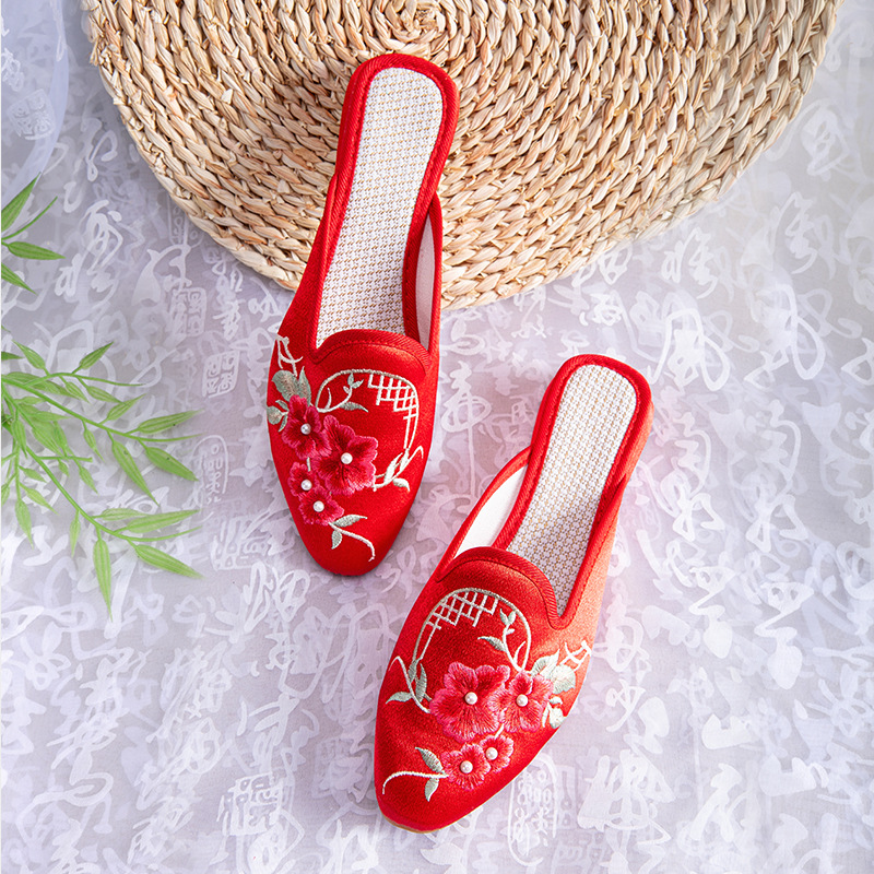 봄과 여름 새로운 여성 신발 높은 자수 슬리퍼 민족 복고풍 홈 편안한 통기성 부드러운 바닥 어머니 신발 여성