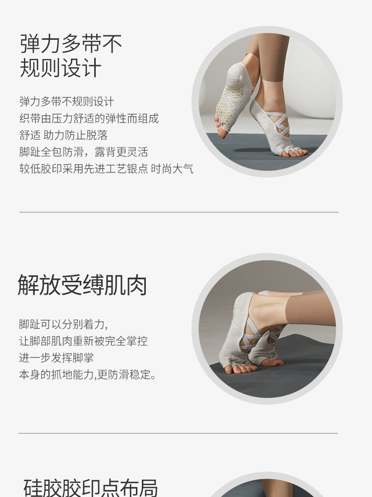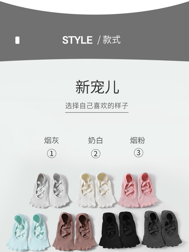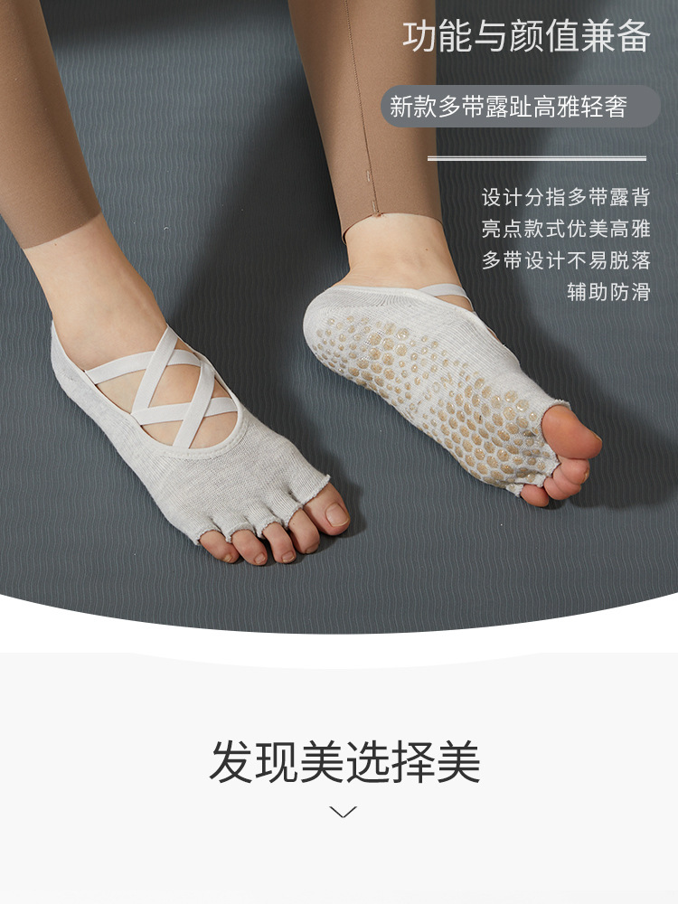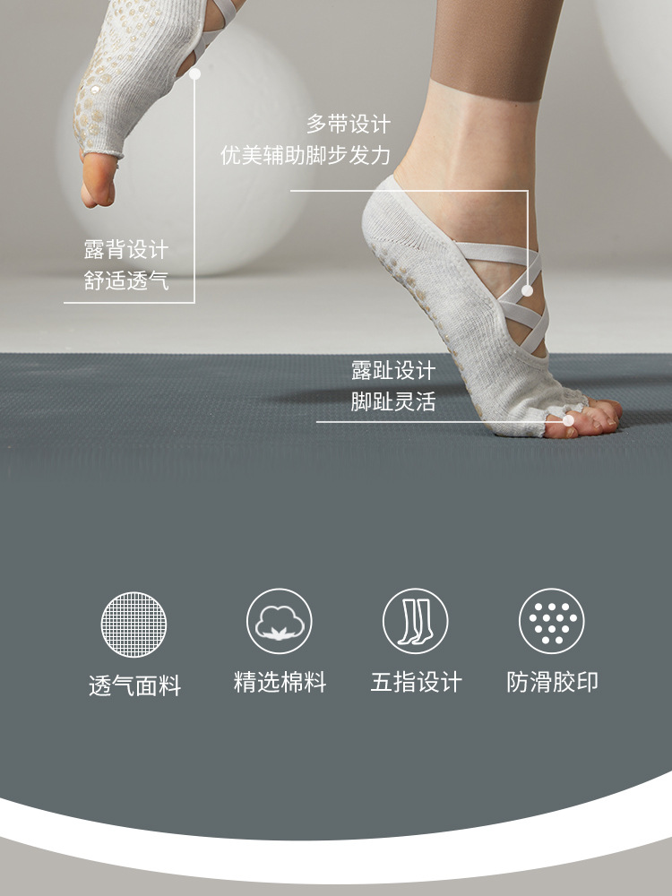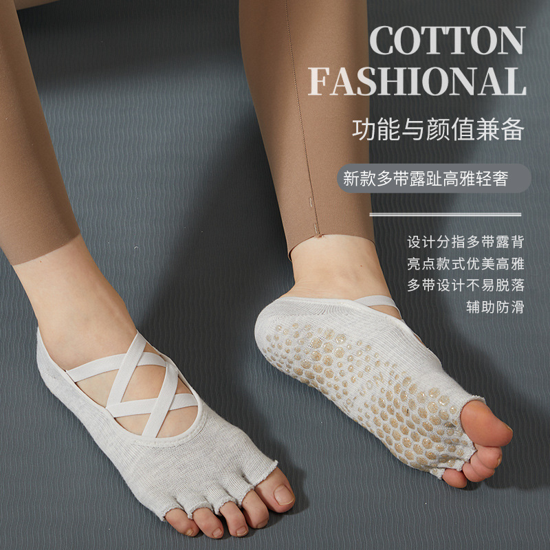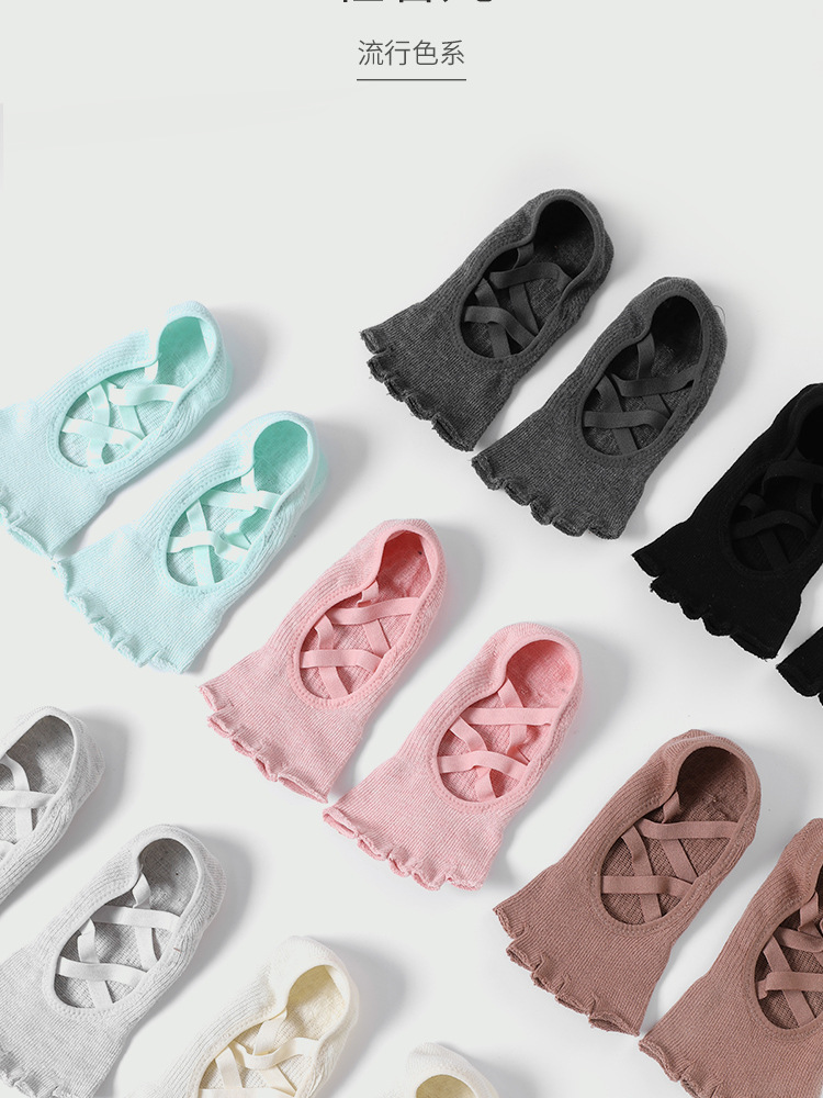 스트랩 요가 양말, 미끄럼 방지 양말, 필라테스 양말, 다섯 손가락 양말, 여성용 스포츠 전문 피트니스 댄스 전용 양말