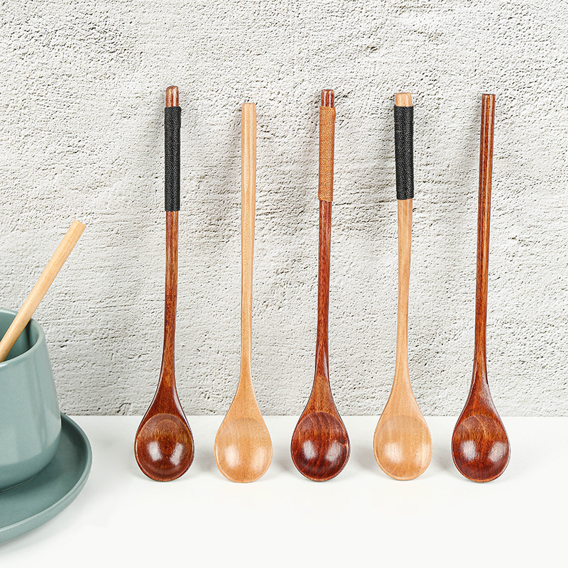 허니 커피 나무 숟가락 얇은 손잡이 실 꿰기 숟가락 뾰족한 숟가락 나무 믹싱 스푼 스푼 스푼 일본식 나무 식기