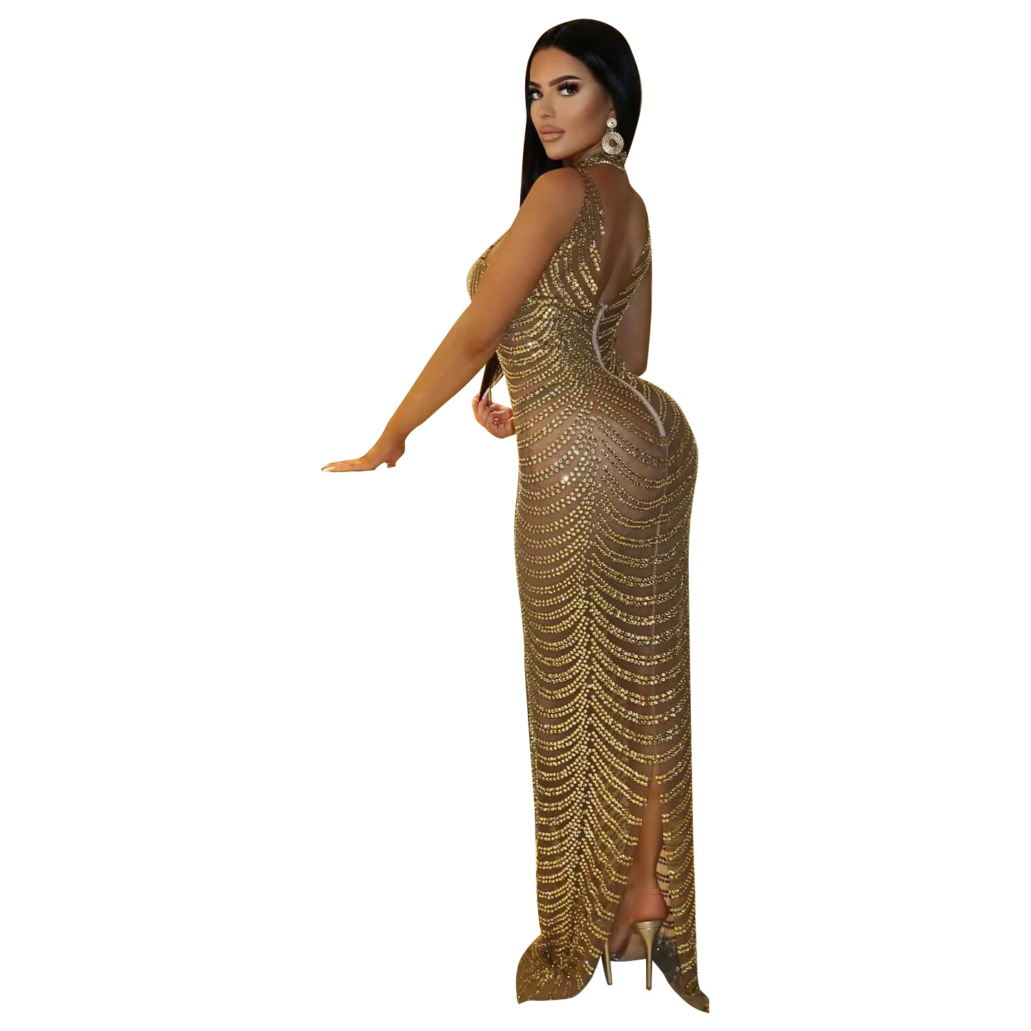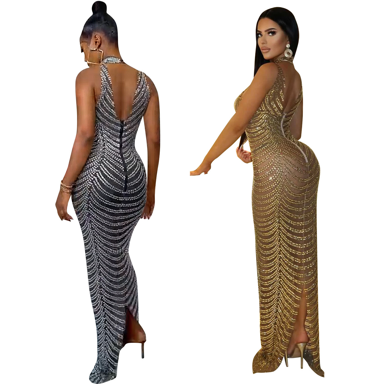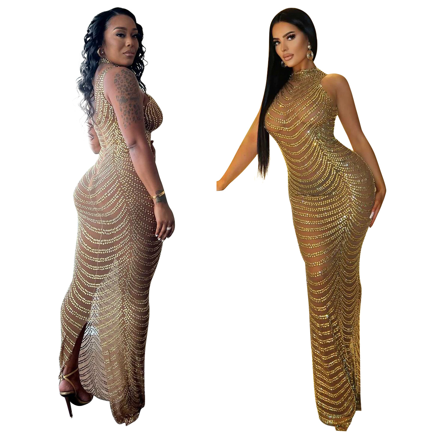 OS6777 크로스-보더 여름 신제품 아마존 유럽과 미국 여성의 섹시한 메쉬 관점 나이트 클럽 뜨거운 드릴링 원피스 여성