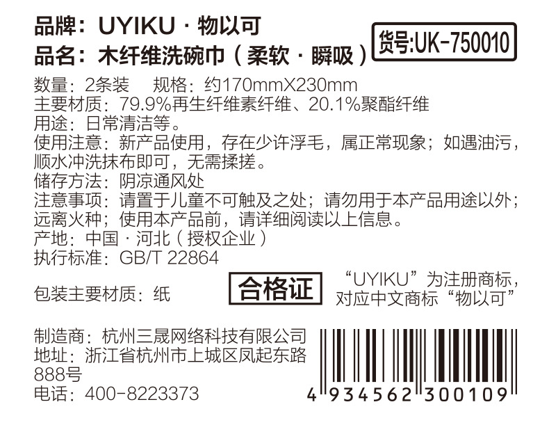 UYIKU 가정용 보푸라기 없는 설거지 타월 나무 섬유 양면 울 주방 행주 도매 2 장