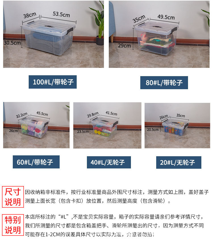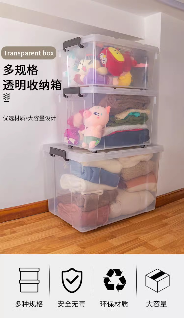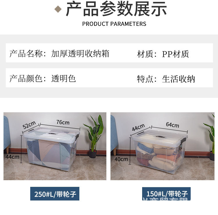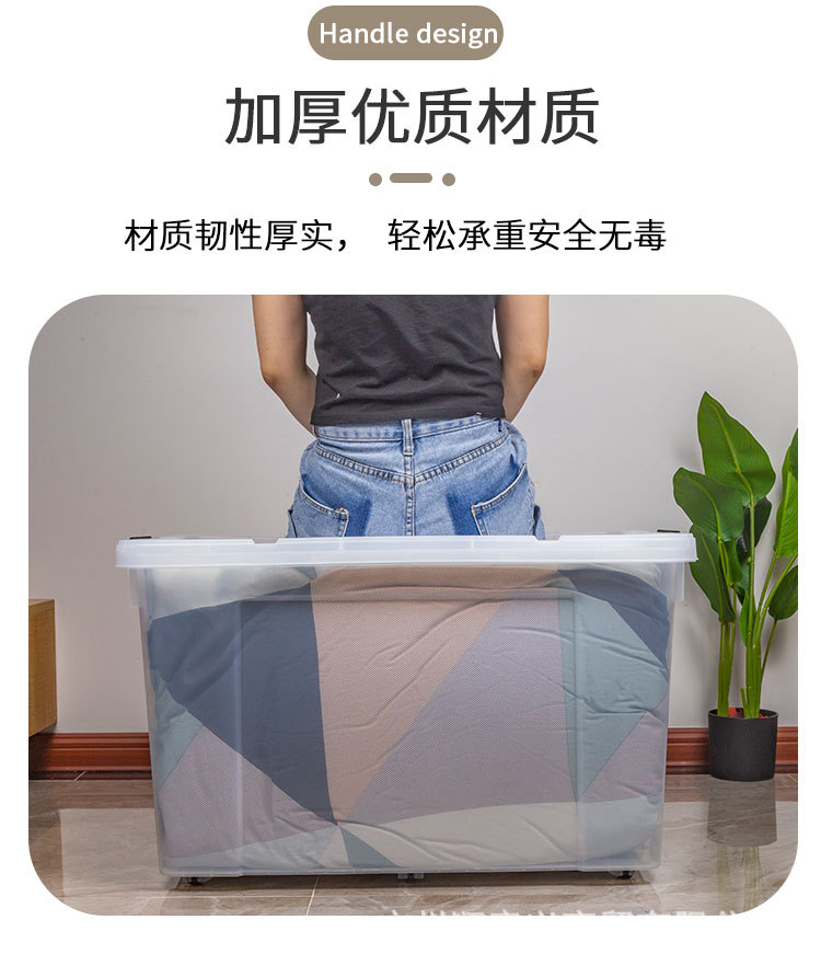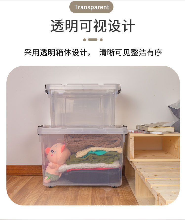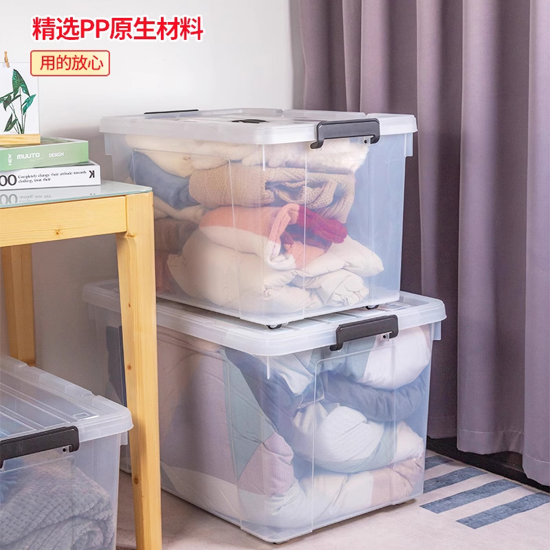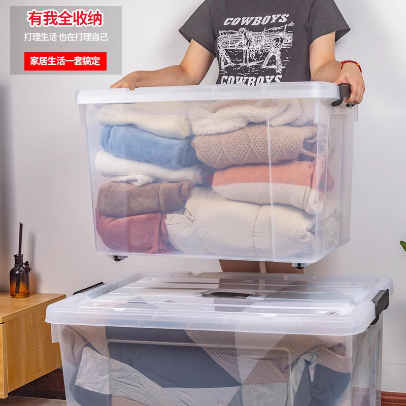 투명 보관함 초대형 두꺼운 가정용 플라스틱 상자 옷 장난감 정리 상자 바퀴와 뚜껑 보관 상자