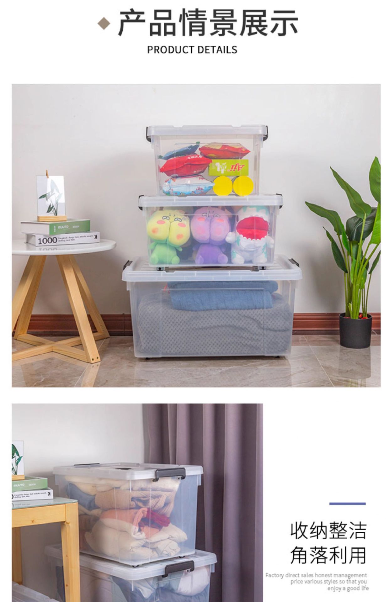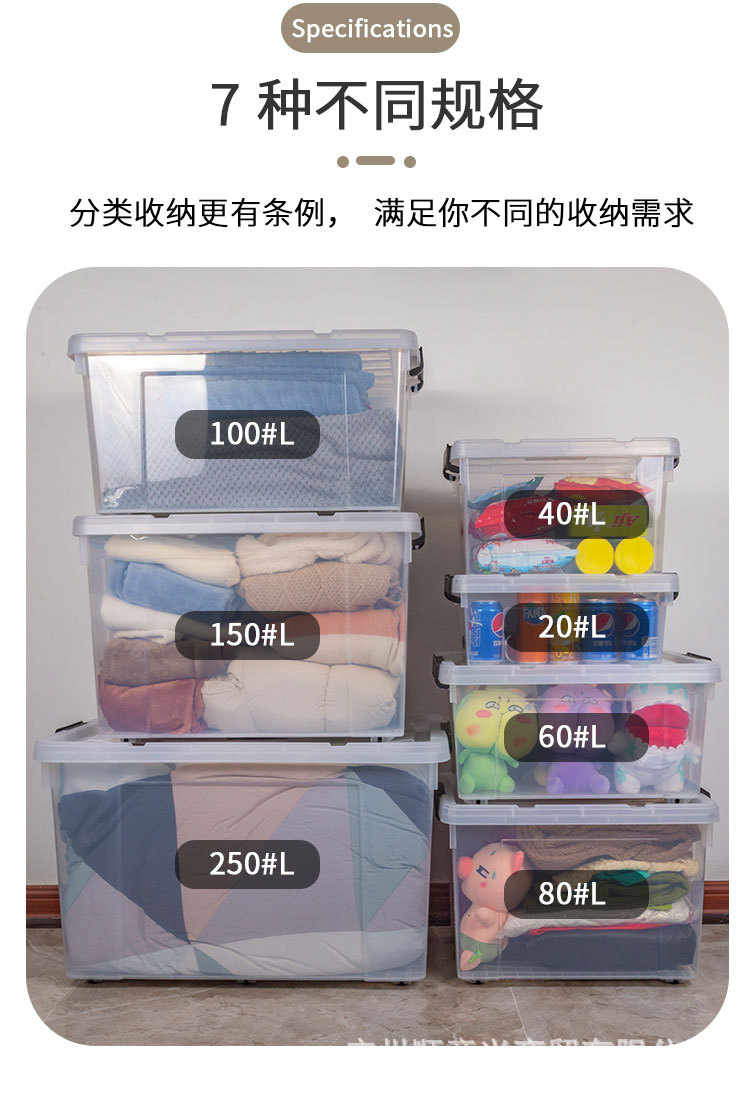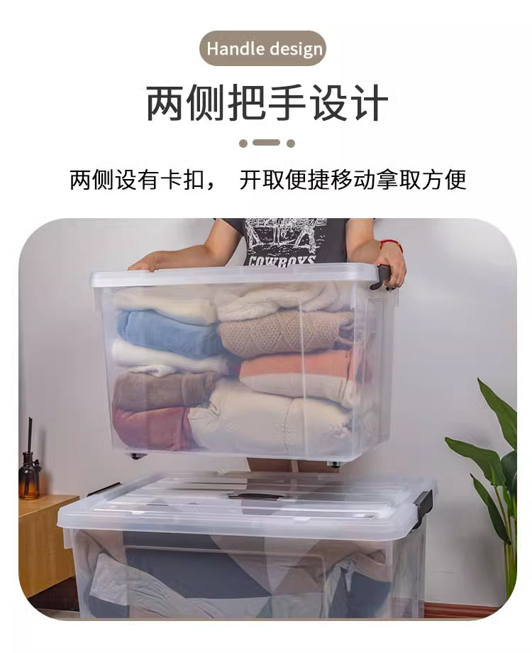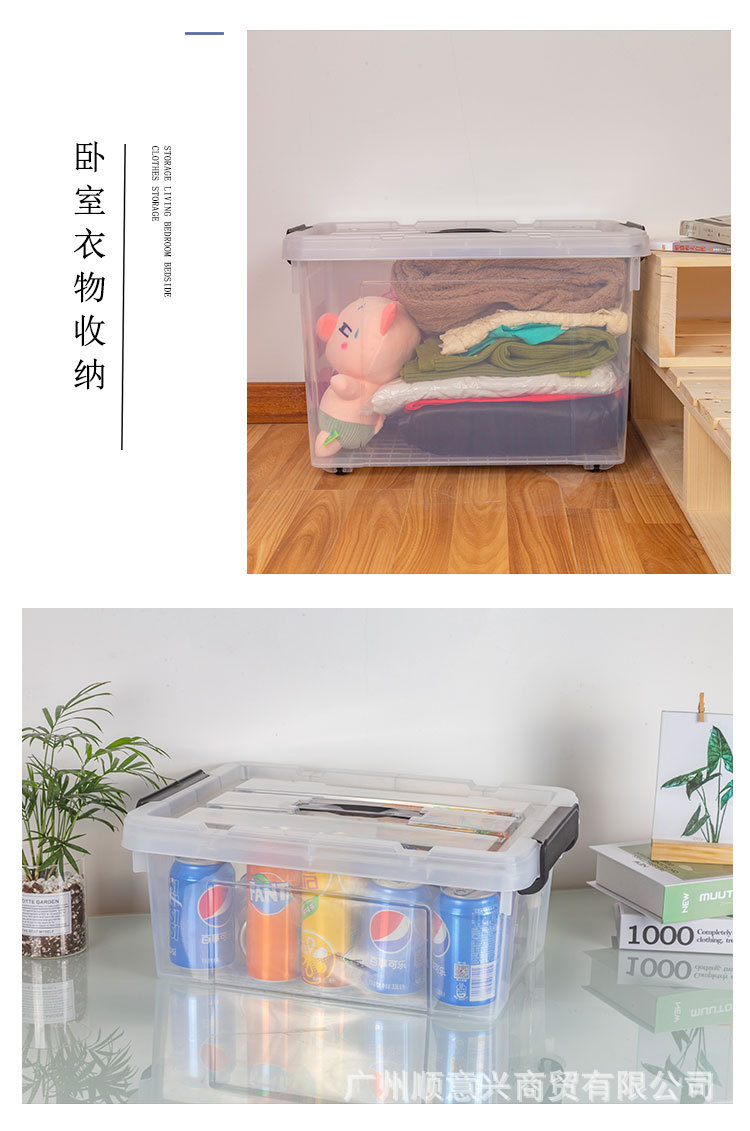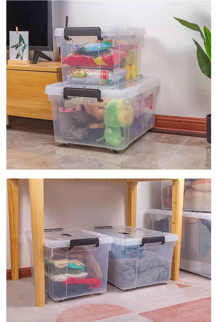 투명 보관함 초대형 두꺼운 가정용 플라스틱 상자 옷 장난감 정리 상자 바퀴와 뚜껑 보관 상자