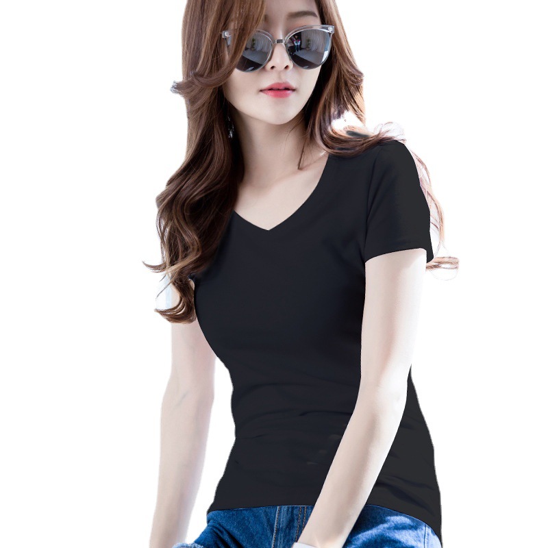 2022 새로운 순면 솔리드 컬러 티셔츠 여성용 반팔 슬림 핏 여름 옷 꽉 끼는 치킨 칼라 반팔 여름 짧은 탑