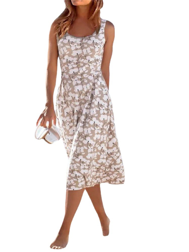 독립 역은 아마존 유럽과 미국의 통근 라운드 넥 꽃 민소매 조끼 해변 여성 중간 길이의 점프 수트를 기원합니다