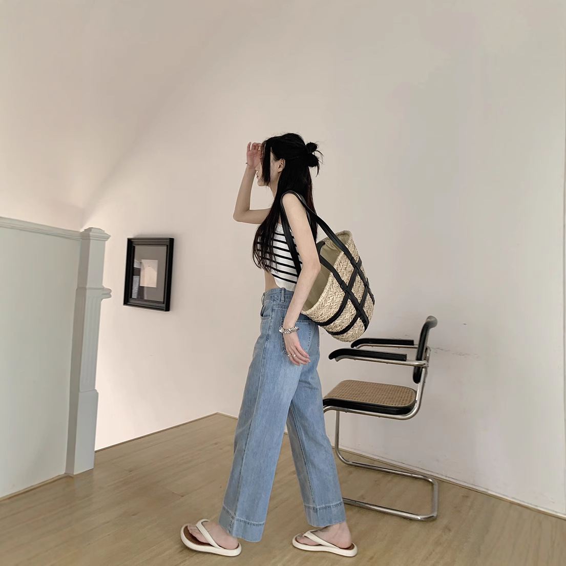 M 裤长:91 腰围:68 臀围:96 大腿:61 裤口:46.5