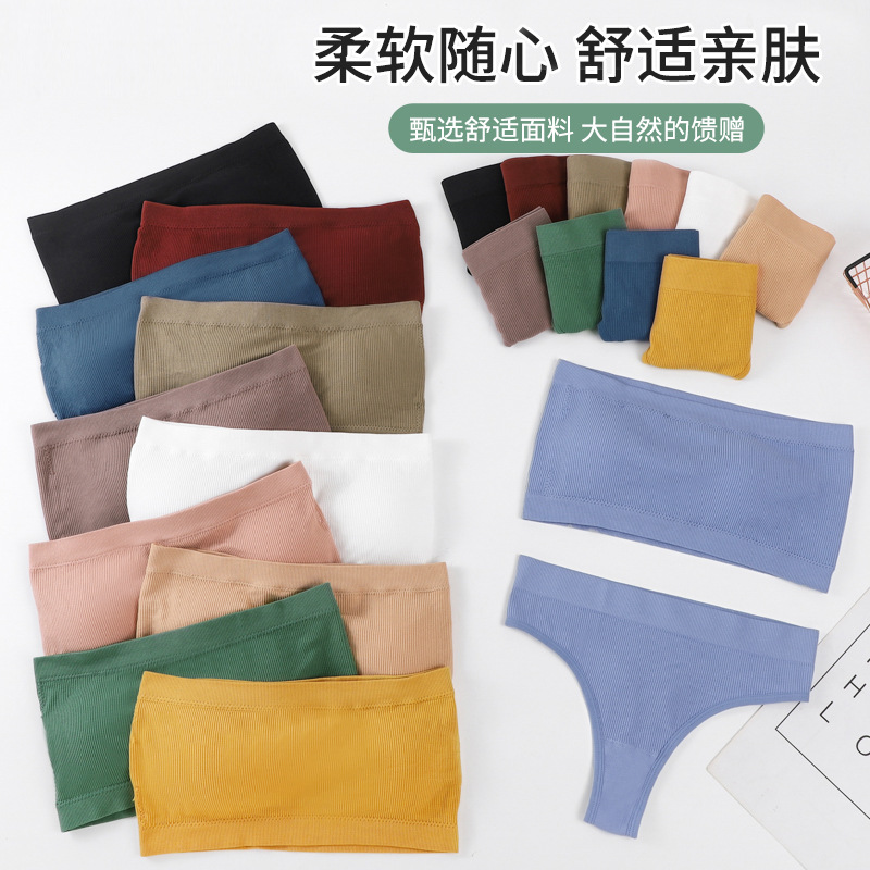 크로스-보더 670 # 끈 끈이없는 세트 여자의 스레드 한 단어 끈이없는 단색 요가 스포츠 속옷 도매