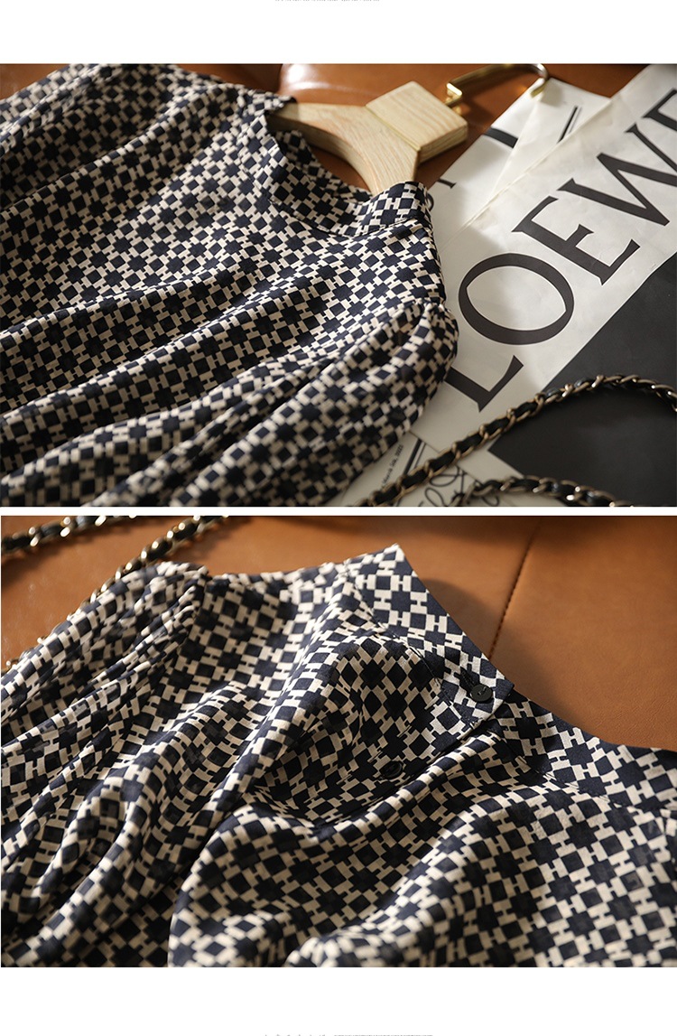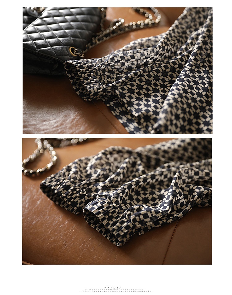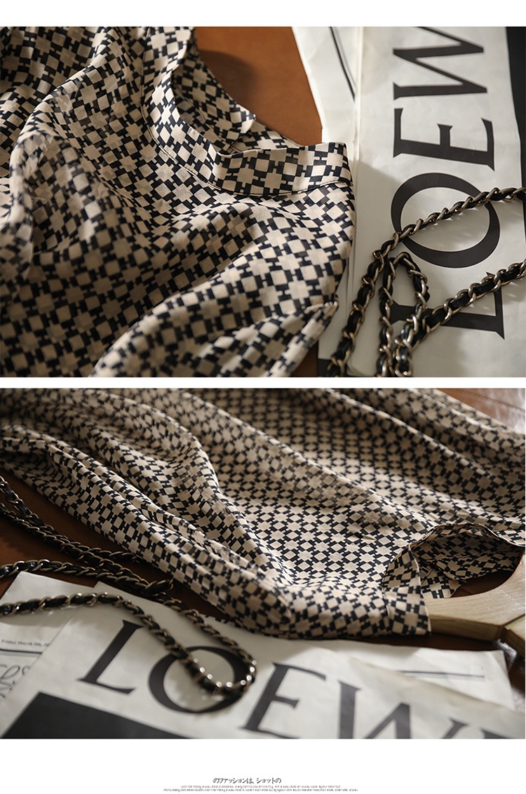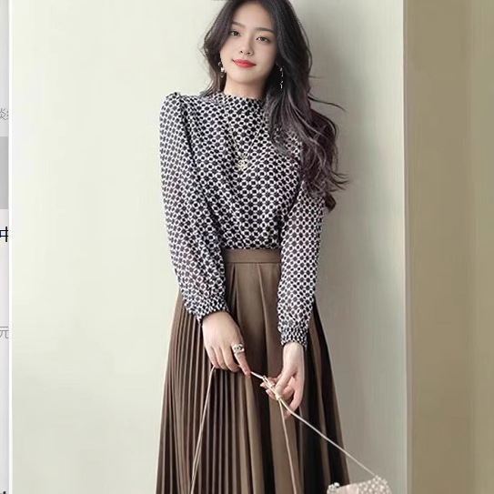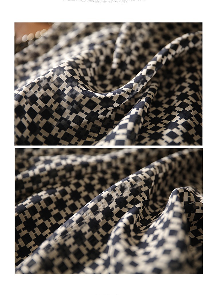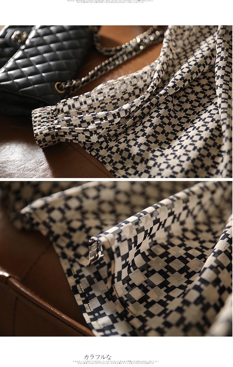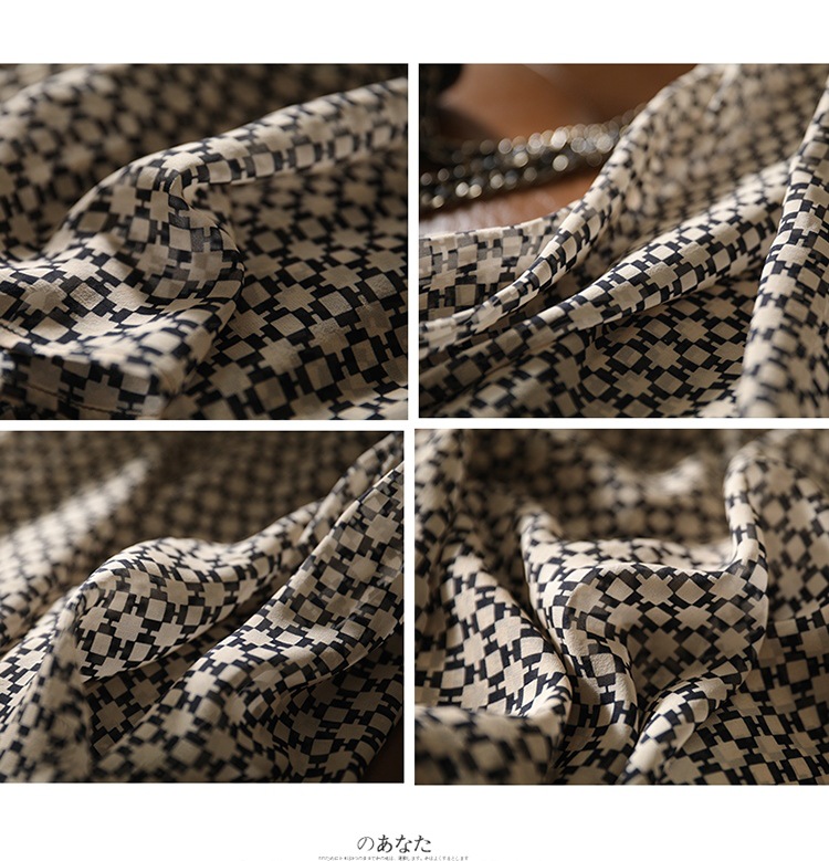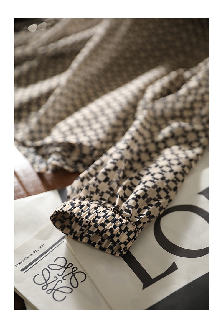 심플하고 우아하며 편안한 여성용 쉬폰 셔츠 2025 봄 여름 가을 캐주얼 프린트 반하이넥 긴팔 셔츠