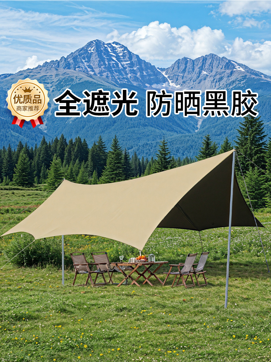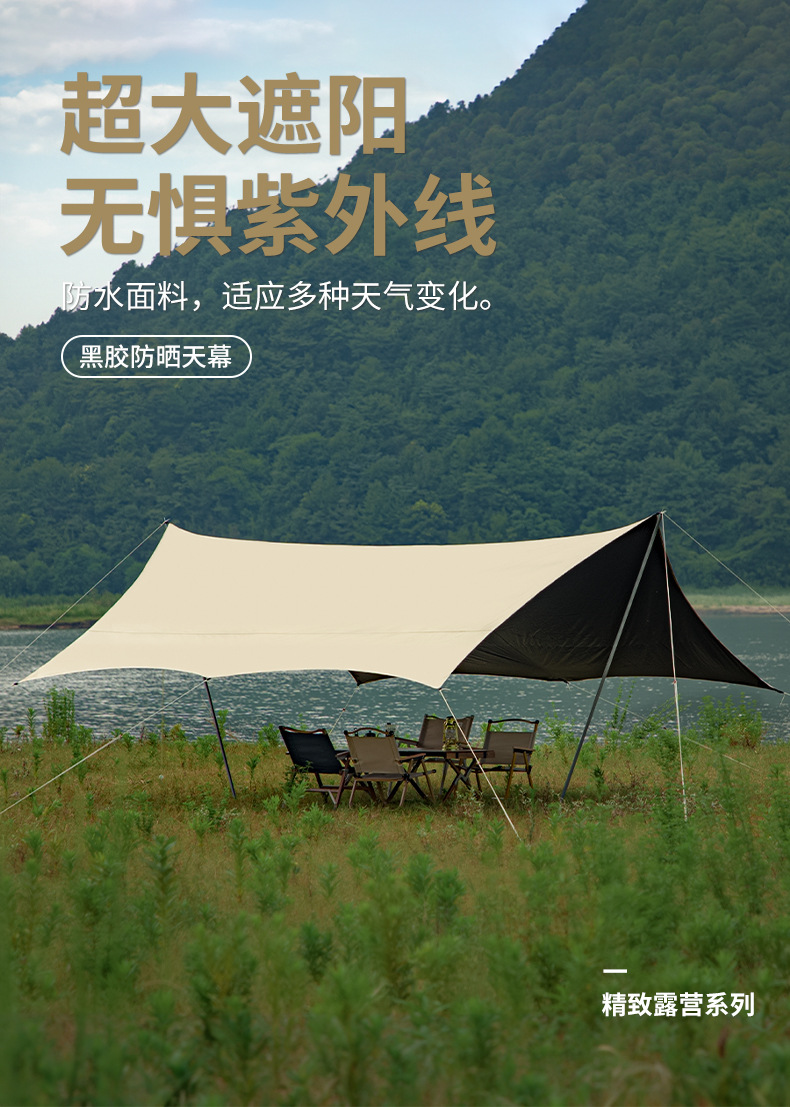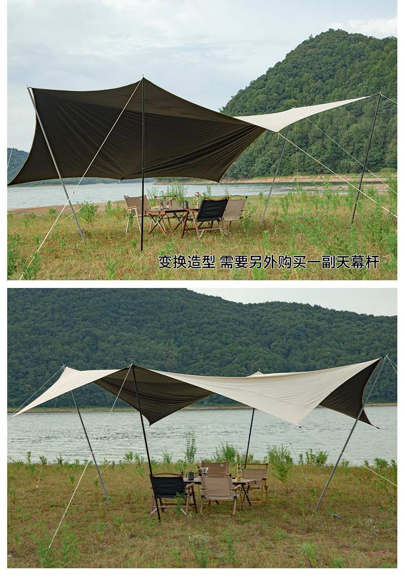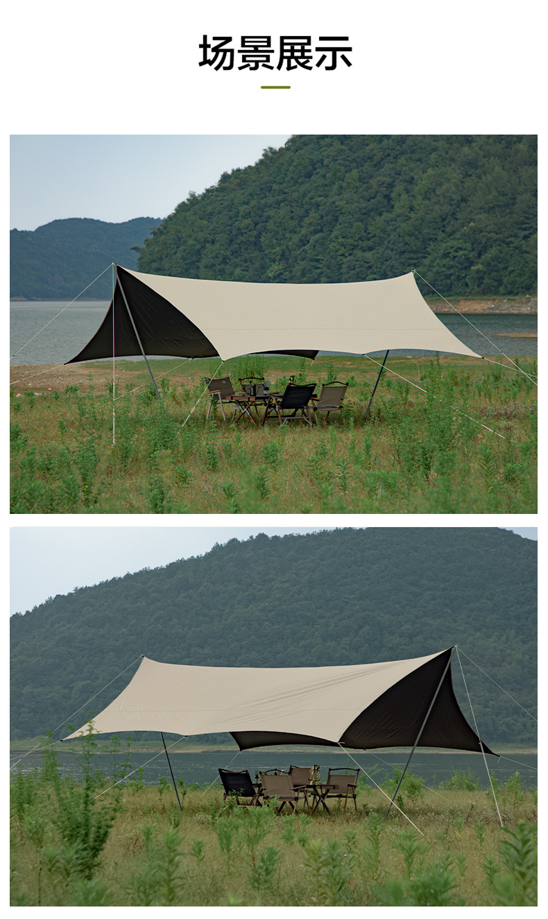 KL 야외 캠핑 육각형 나비형 자외선 차단 공원 피크닉 텐트 차양막 블랙 글로시 우산 자외선 차단