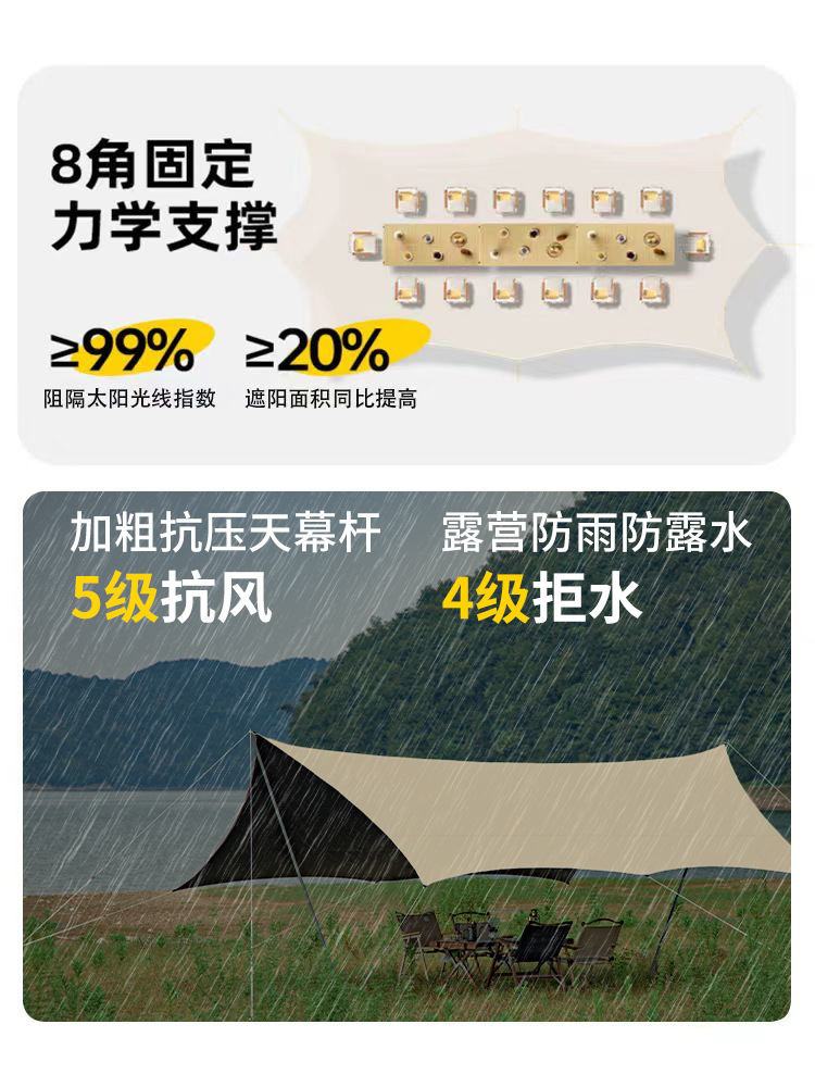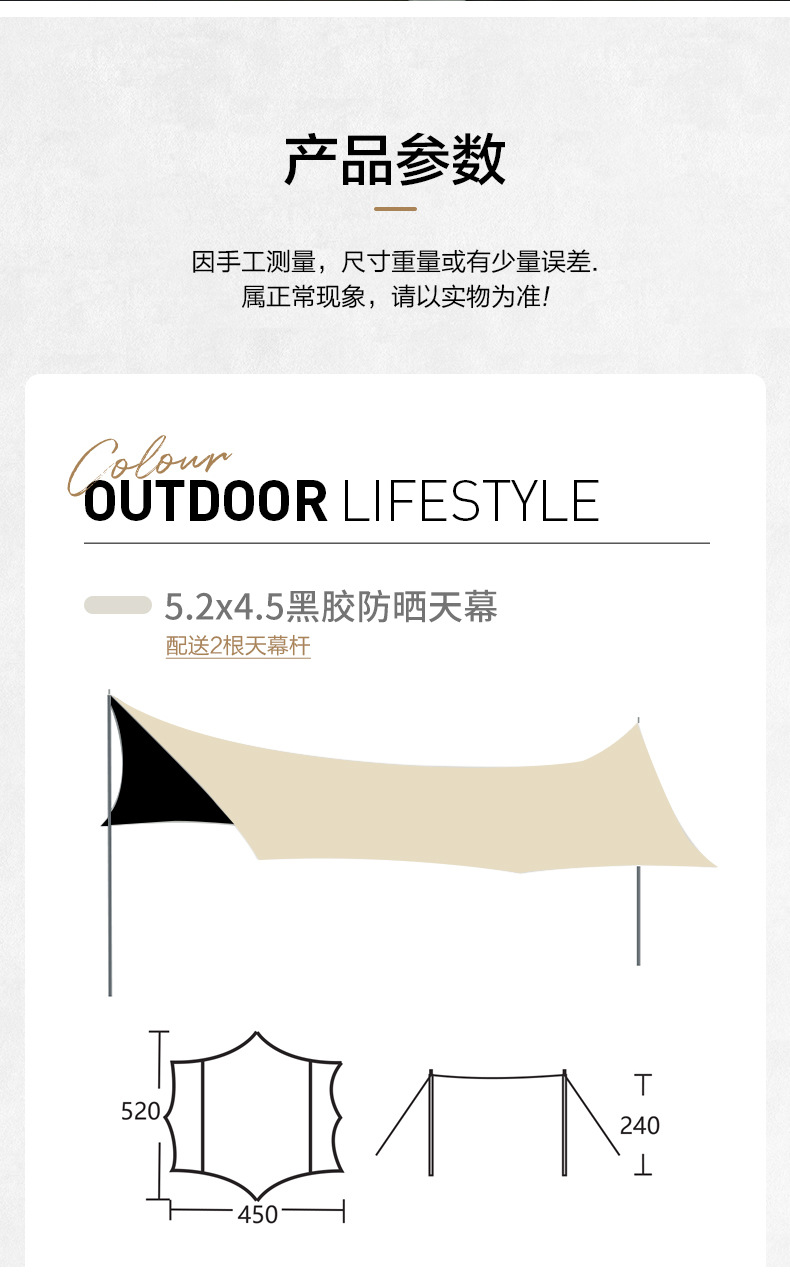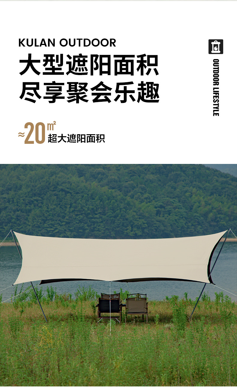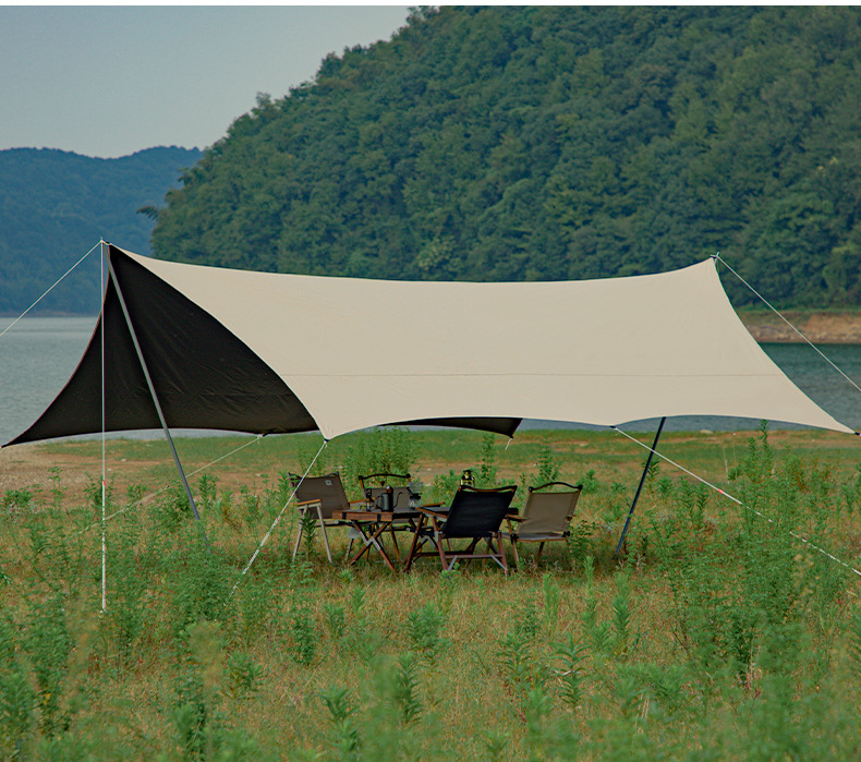 KL 야외 캠핑 육각형 나비형 자외선 차단 공원 피크닉 텐트 차양막 블랙 글로시 우산 자외선 차단