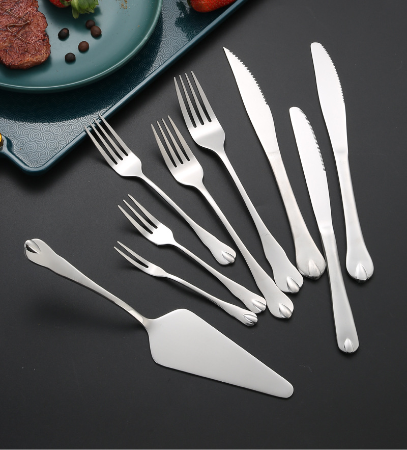 스테인레스 스틸 숟가락 가정용 식기 칼과 포크 스푼 세트 물방울 시리즈 뾰족한 라운드 스푼 서양 음식 포크 도매 커피 스푼