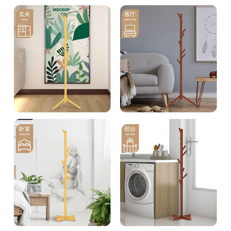 단단한 나무 코트 랙 바닥 침실 수직 옷걸이 가정용 간단한 옷 걸이 랙 룸 가방 걸이 랙
