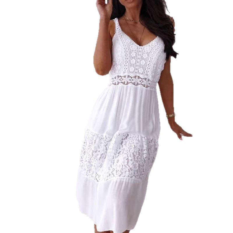2022 독립 역 아마존 AliExpress 새로운 유럽과 미국의 섹시한 레이스 스티칭 스트랩 비치 스커트 원피스