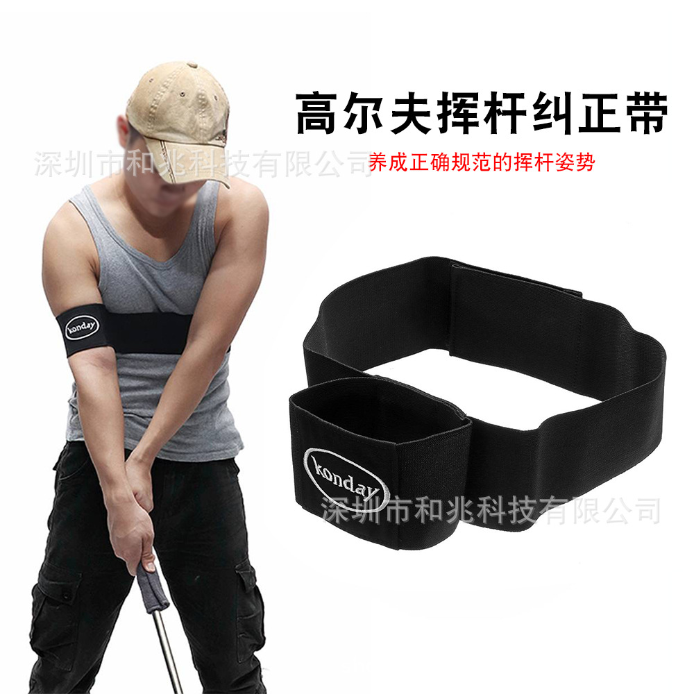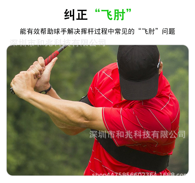 夫球初学者在上杆的时候右臂抬起向上,并非紧贴身体,本产品可以有效帮助球手在挥杆时对右臂起到