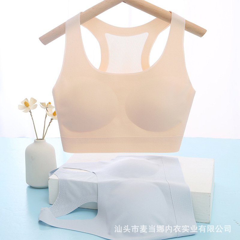 2023 새로운 여자 스포츠 조끼 고정 컵 고탄력 속옷 단색 중공 등 학생 등