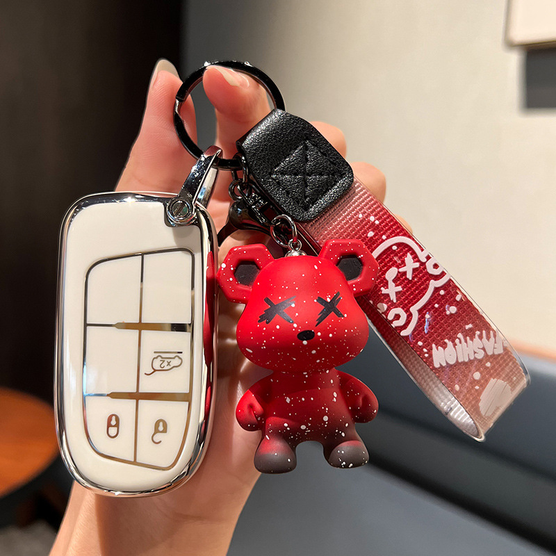 지프 C-스마트 2 키 [싱글 쉘 화이트] + 레드 폭력 곰 펜던트