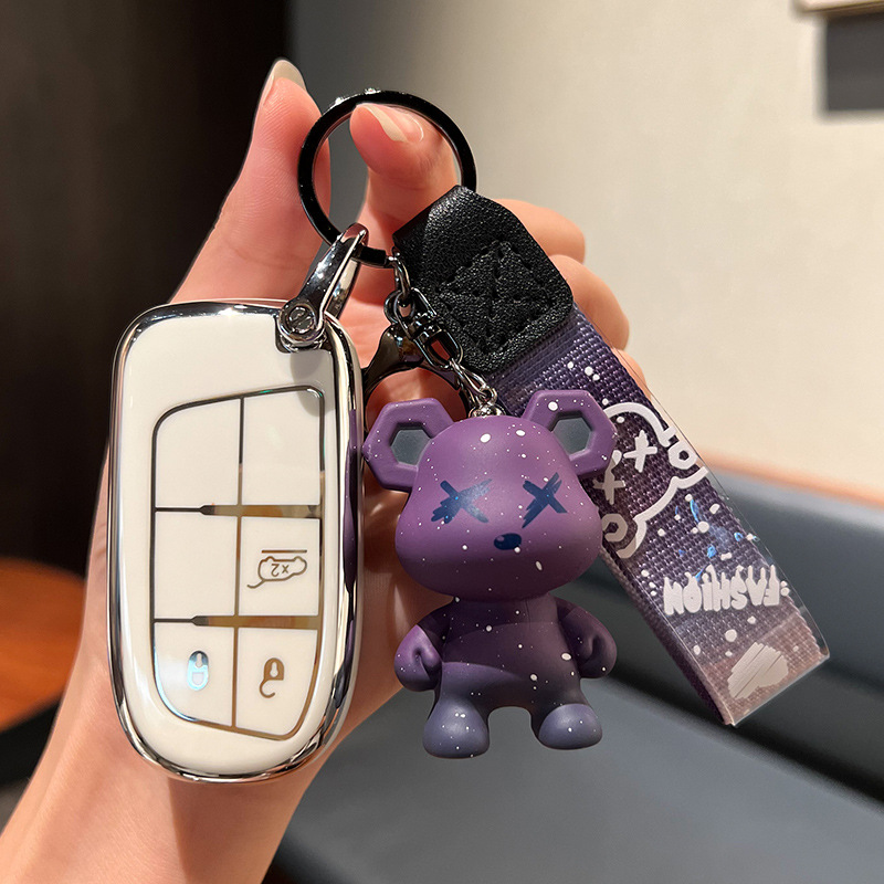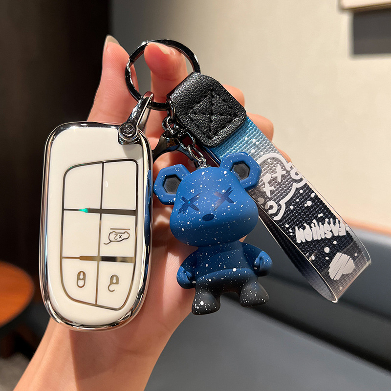 지프 C-스마트 2 키 [싱글 쉘 화이트] + 블루 폭력 곰 펜던트