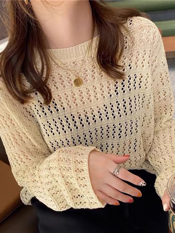 여성용 얇은 니트 스웨터 2026 봄 신상 디자인 감각적인 틈새시장 스타일 긴팔 루즈핏 아우터 상의