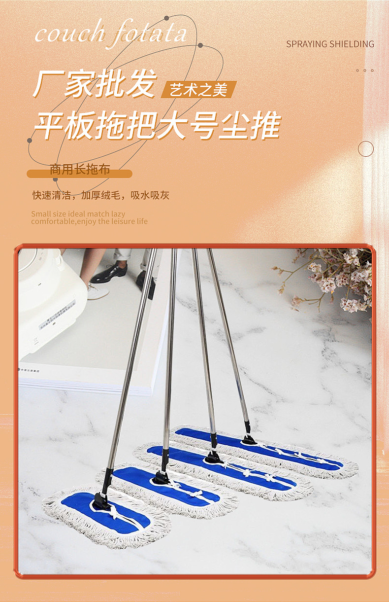 공장 도매 플랫 걸레 대형 먼지 푸시 호텔 대형 행걸레 공장 청소 행 걸레 상업용 롱 걸레