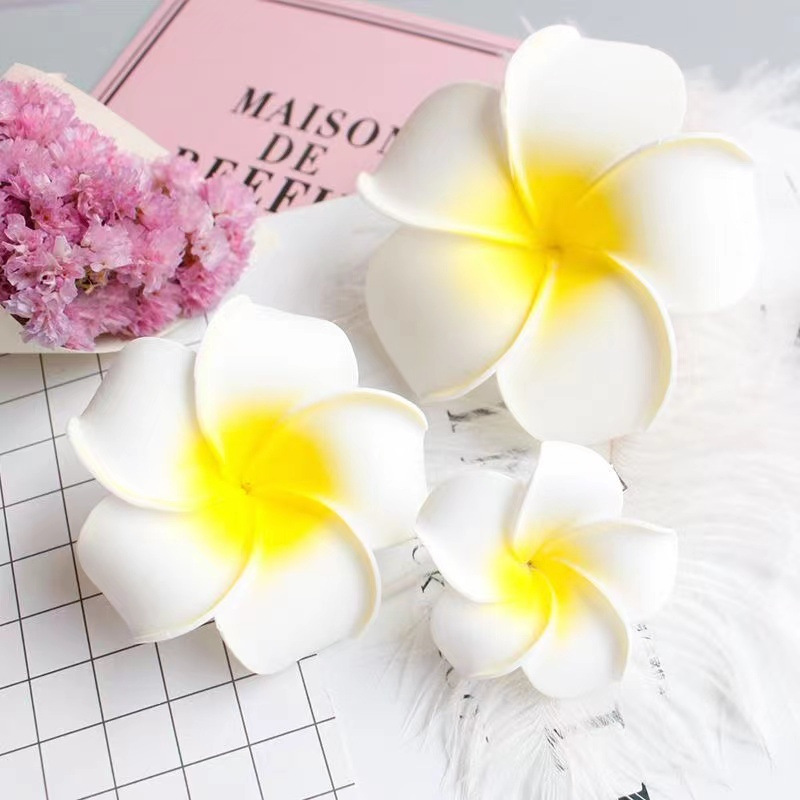 用途:仿真鸡蛋花,很适合做饰品,胸花,头花哦!经典花艺永不过时哦!