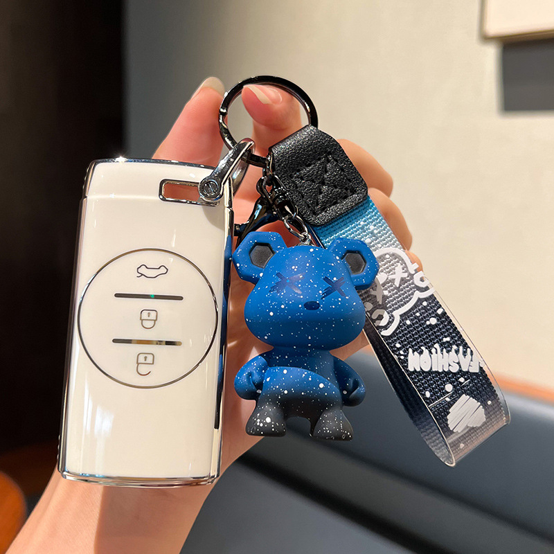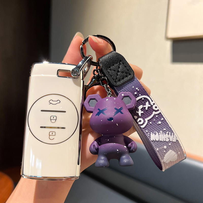 Chery G-스마트 3 키 [싱글 쉘 화이트] + 회색 폭력 곰 펜던트