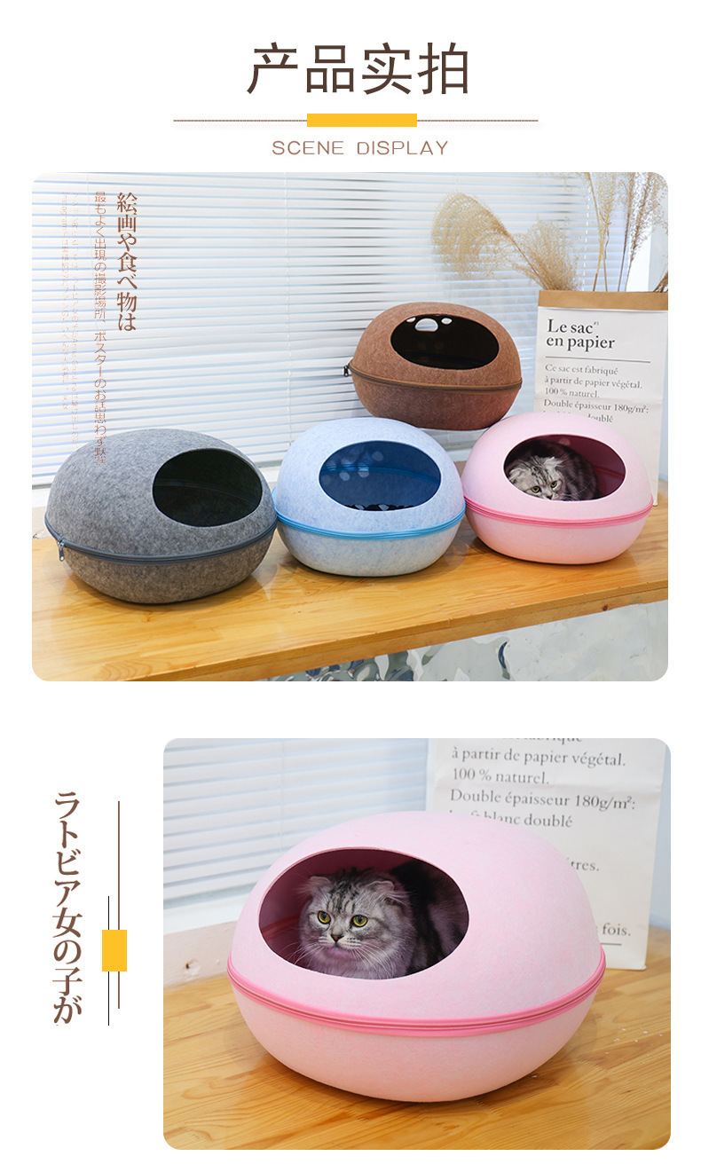 타원형 고양이 둥지, 펠트 소재, 긁힘 방지, 내마모성, 넓은 공간, 통기성, 고양이 용품, 반밀폐형 고양이 둥지, 강아지 둥지