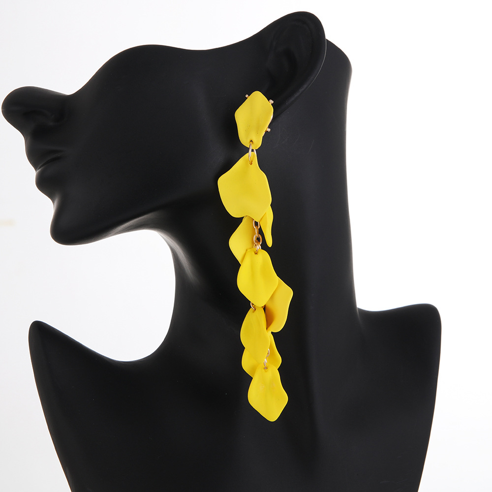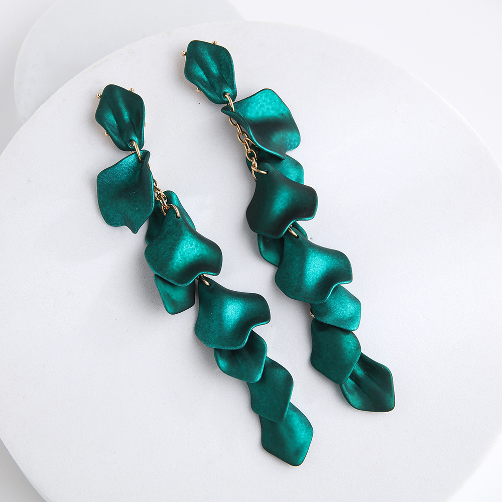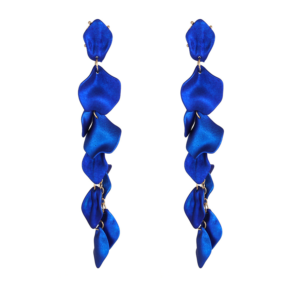 유럽과 미국의 패션 복고풍 스타일 붉은 파란색 꽃잎 잎 긴 귀걸이 국경 간 뜨거운 트렌드 귀 보석