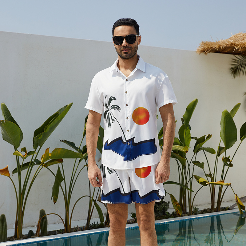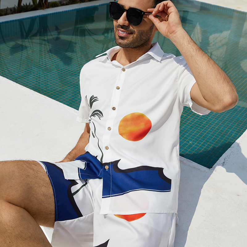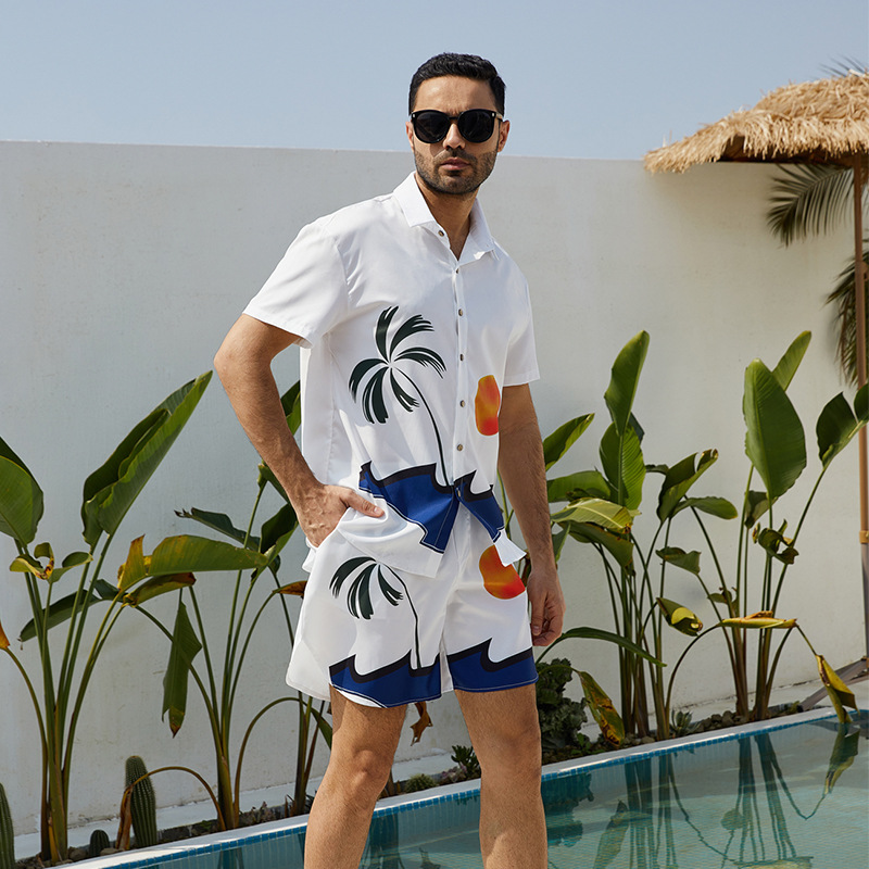 아마존 프론트 셔츠 프린트 아메리칸 라펠 비치 셔츠 남성 여름 트렌디 브랜드 반팔 하와이 남성 의류