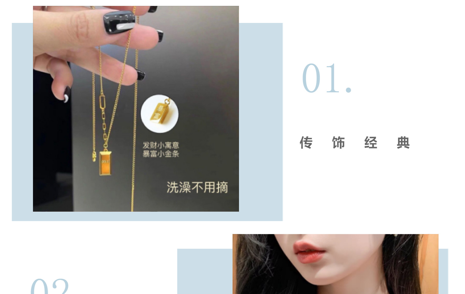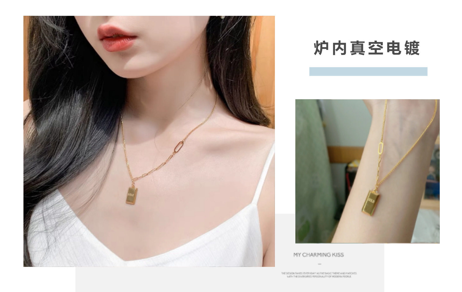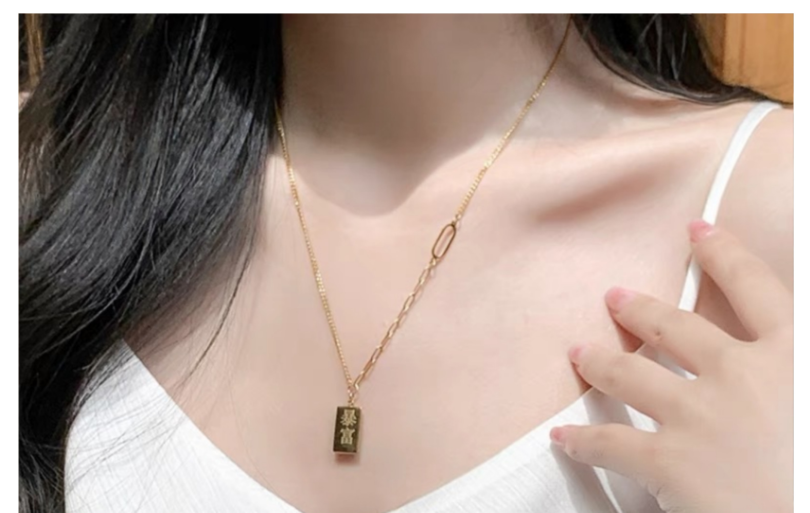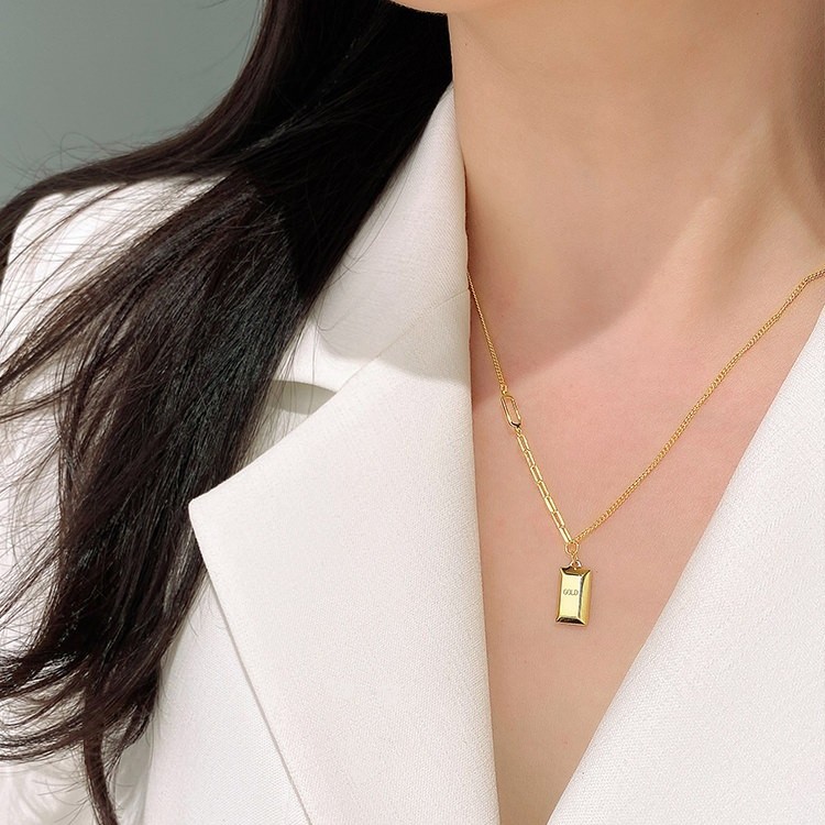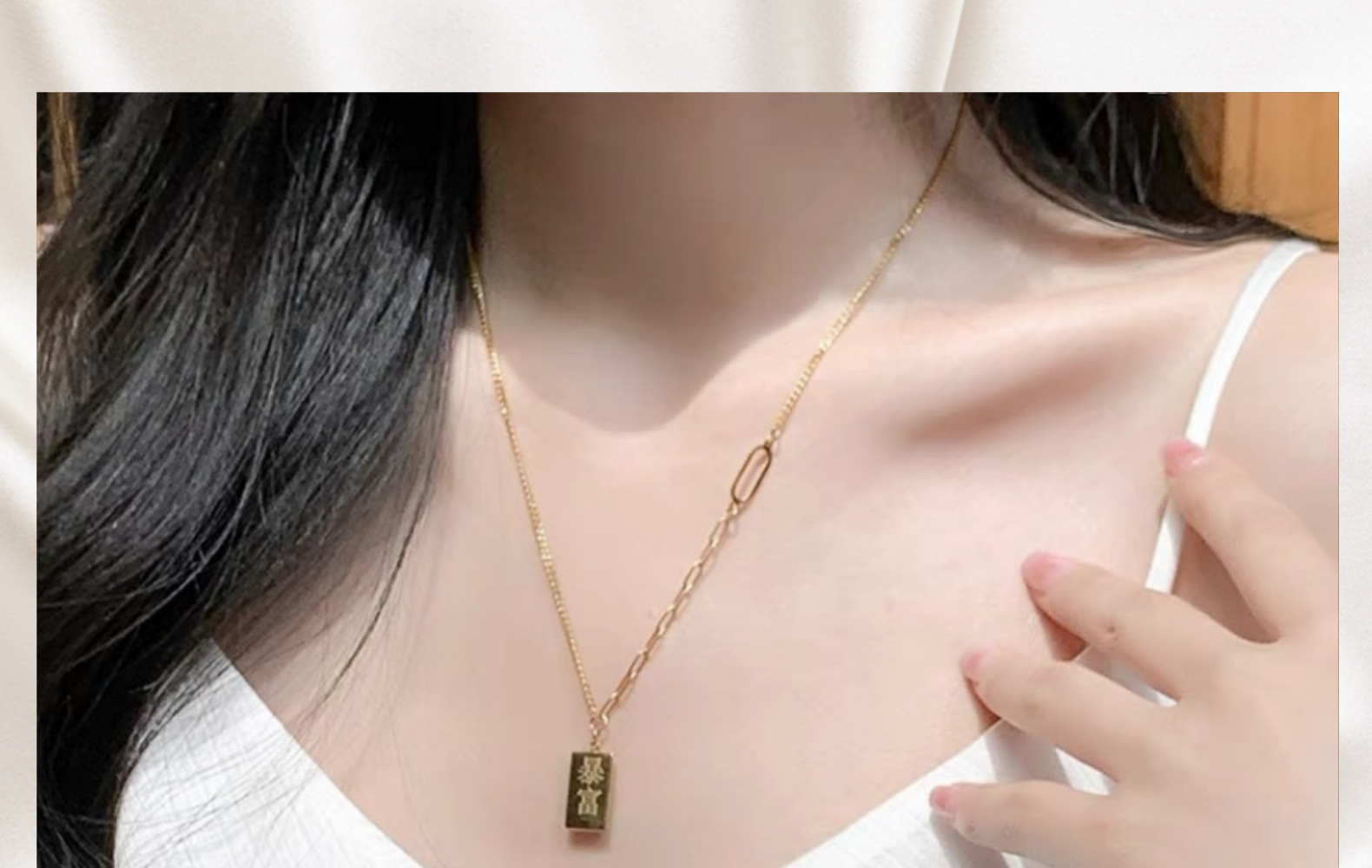 풍부하고 행운의 작은 금 벽돌 티타늄 강철 목걸이 여성 2022 폭발 그물 빨간 쇄골 체인 틈새 디자인 패션 펜던트