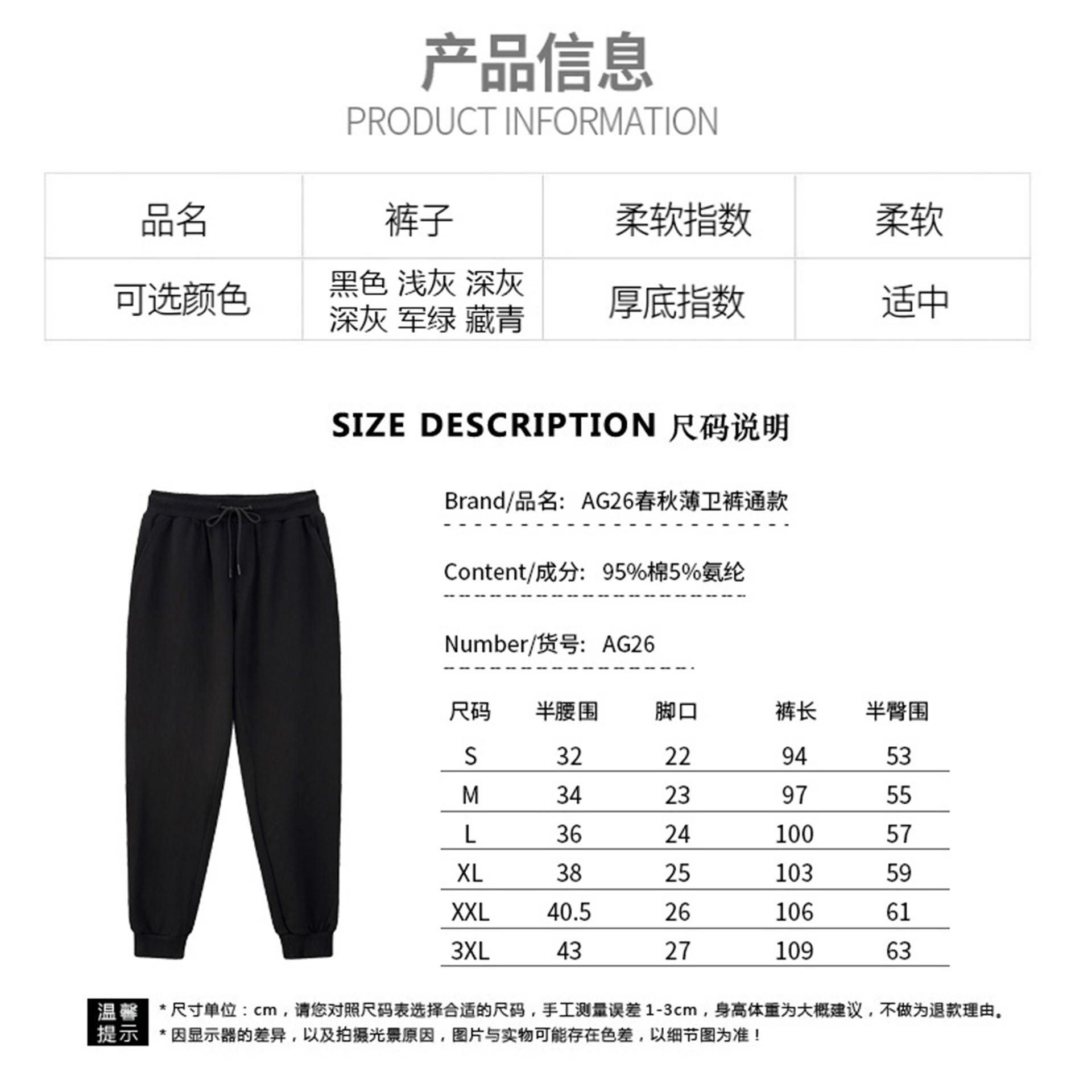 AG 봄가을 얇은 남성용 스웨트팬츠, 단색 루즈핏 드레이프 스타일, 밑단 조절 가능한 슬림핏 남성 스포츠 롱팬츠, 프린트 자수 로고