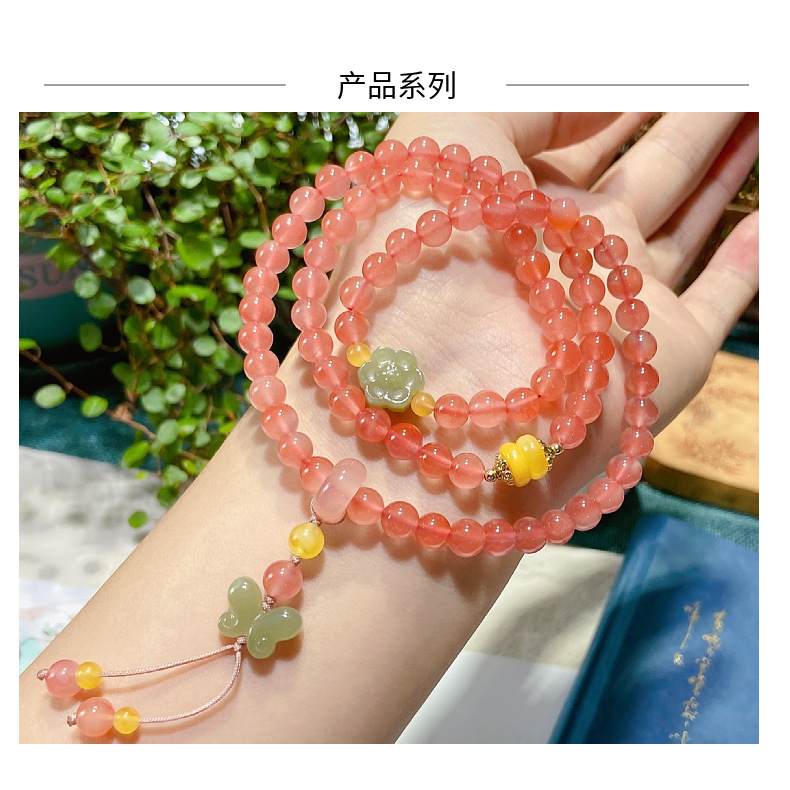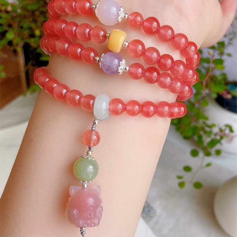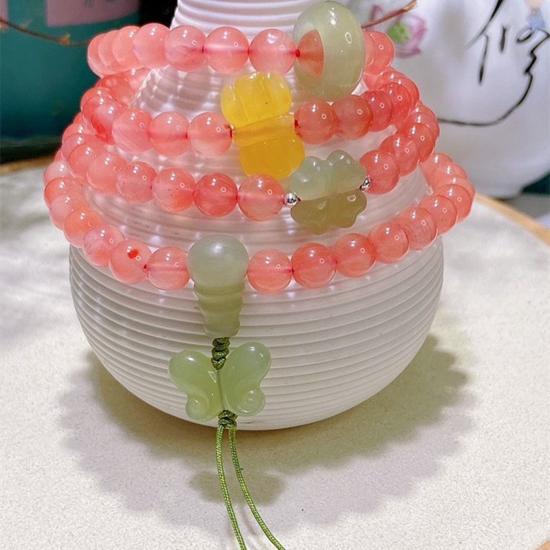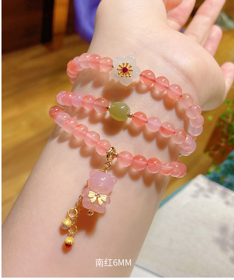 사우스 레드 6mm 물 레드 멀티 서클 팔찌 여성 민족 스타일 연인 선물 여자 친구 쉐이크 사운드 뜨거운 a 도매