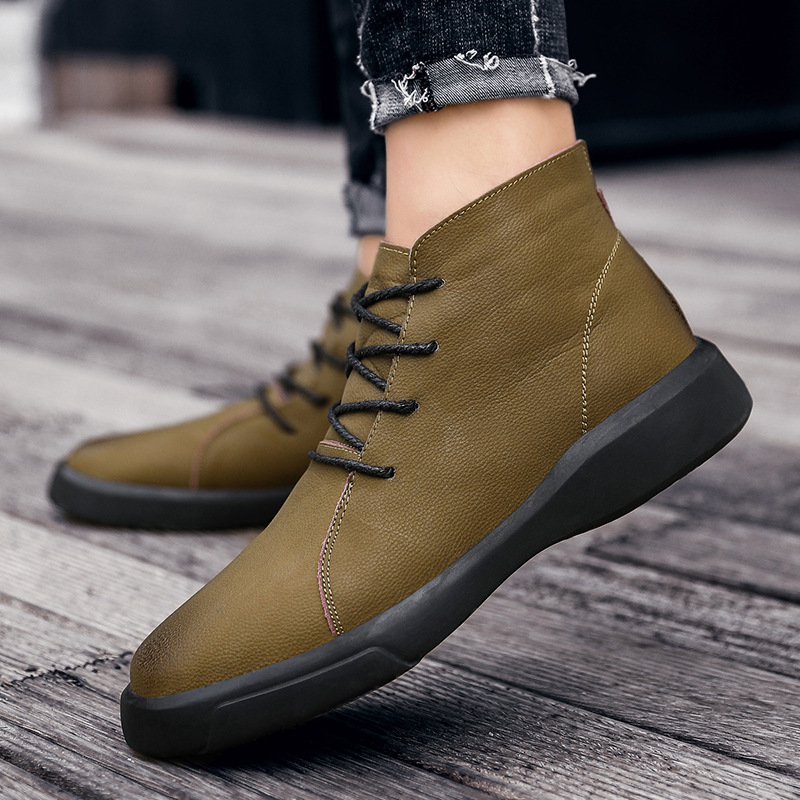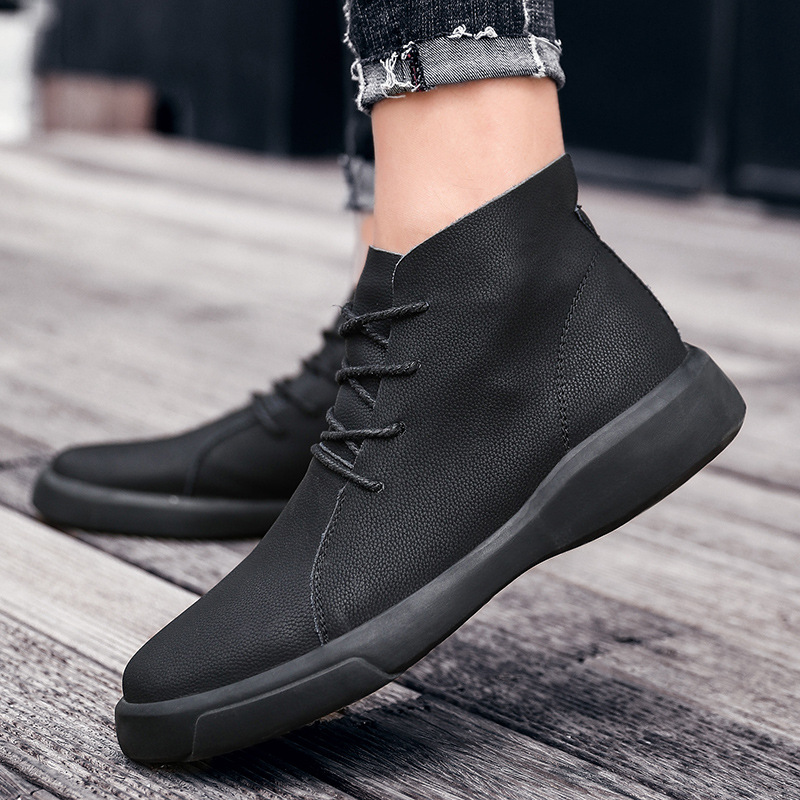 가을과 겨울 플러스 사이즈 남자 클래식 영국 싱글 기모 가죽 마틴 부츠 사계절 레트로 캐주얼 폭발성 코튼 슈즈