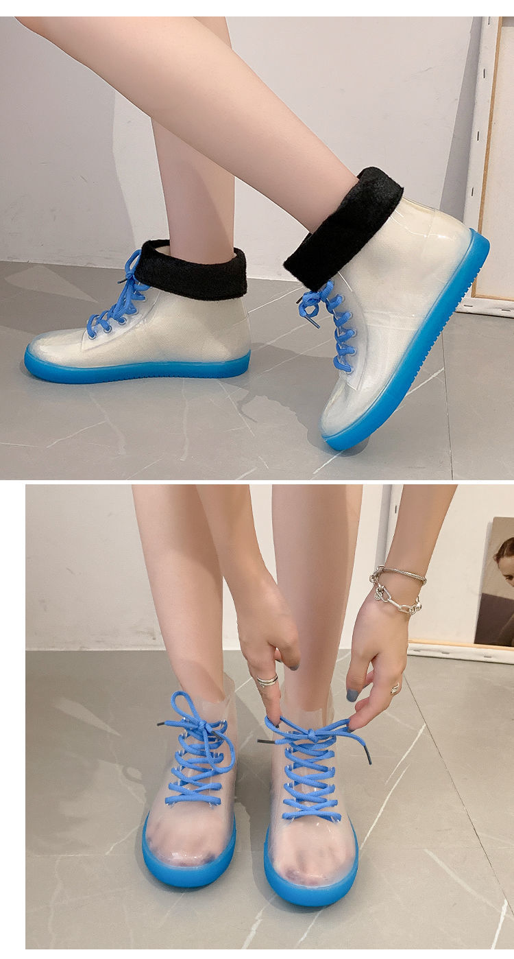 투명 장화 여성 패션 한국 성인 장화 학생 젤리 신발 방수 신발 귀여운 물 부츠 미끄럼 방지 고무 신발 커버