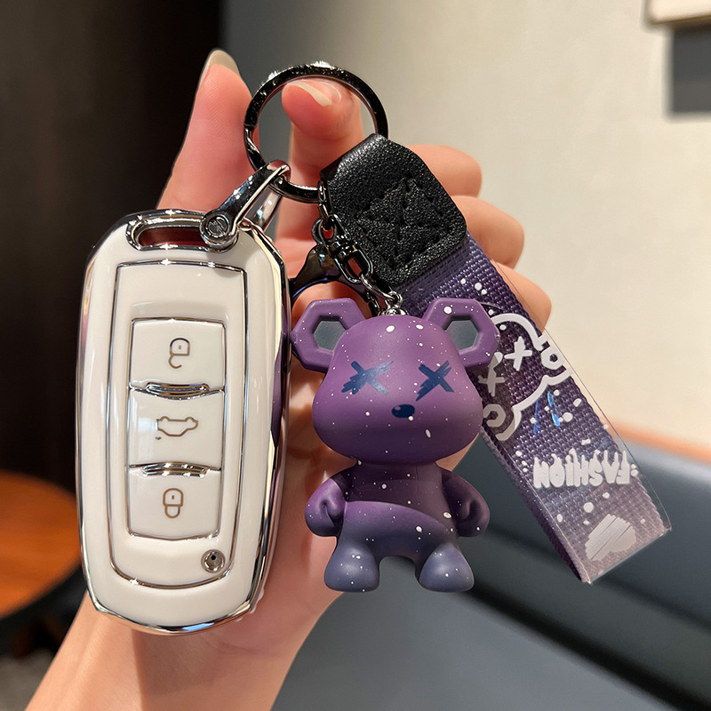 Geely D-스마트 4 키 [싱글 쉘 화이트] + 보라색 폭력 곰 펜던트